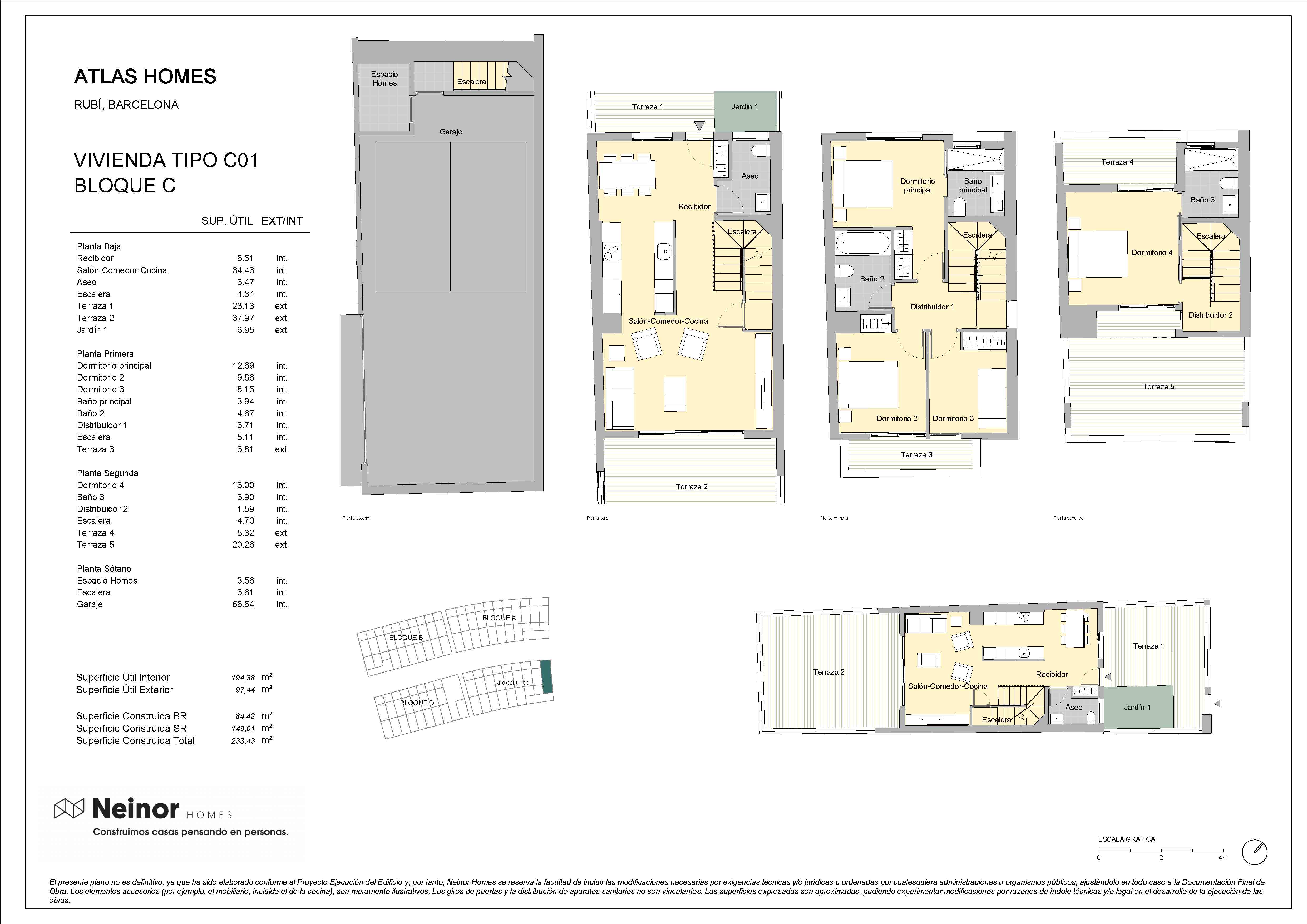 El conjunto residencial de Atlas Homes está formado por 4 conjuntos de casas unifamiliares adosadas distribuidas en 4 parcelas, que conforman un total de 38 chalets de planta baja y 2 alturas, con 4 dormitorios, 3 baños y un aseo. En su planta sótano disponen de un box de aparcamiento privado para 2 vehículos.
