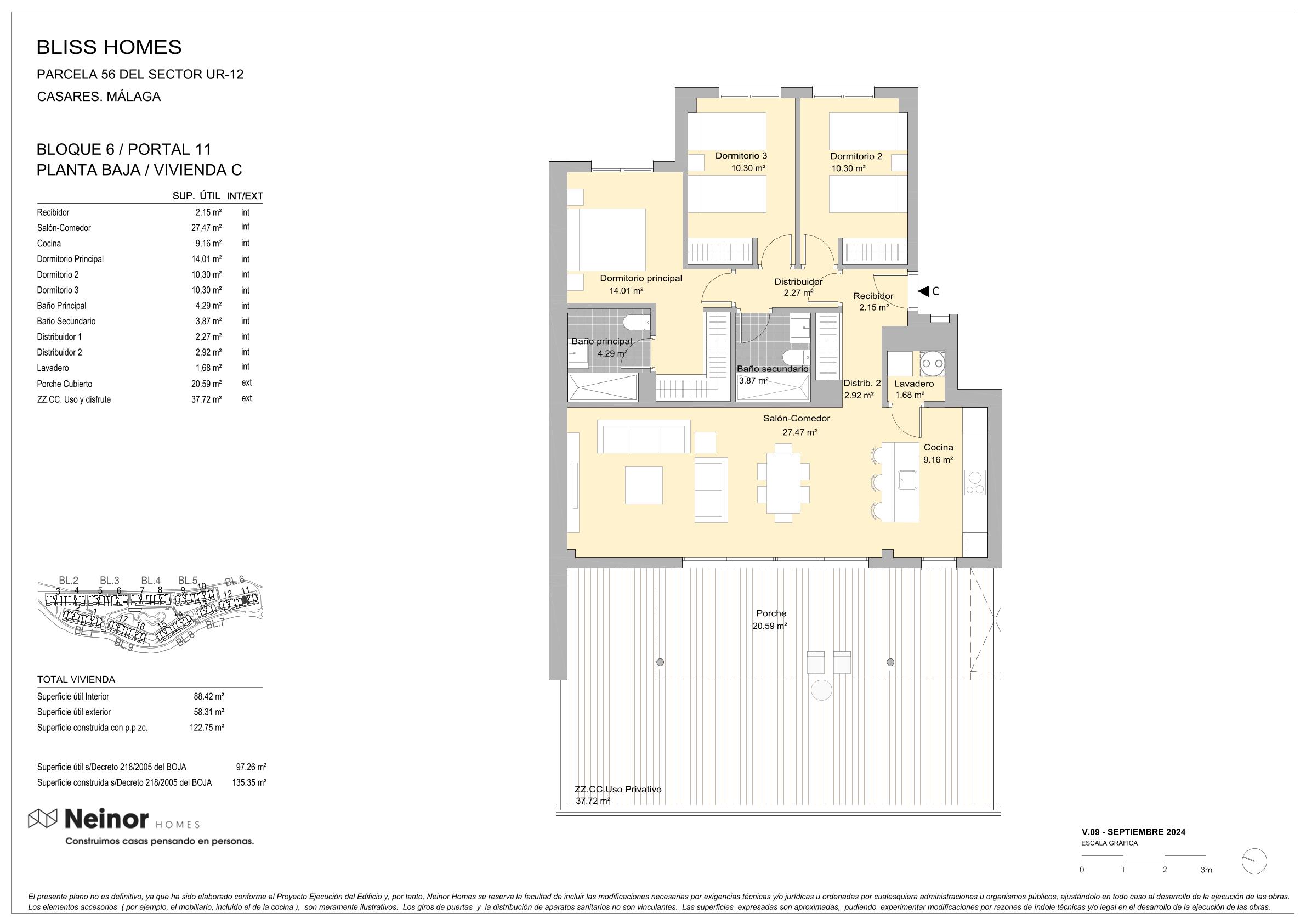 The Bliss Homes residential complex has a total of 134 homes with 2, 3 and 4 bedrooms distributed in 9 blocks, whose avant-garde and modern design blends into the adjacent golf course.
