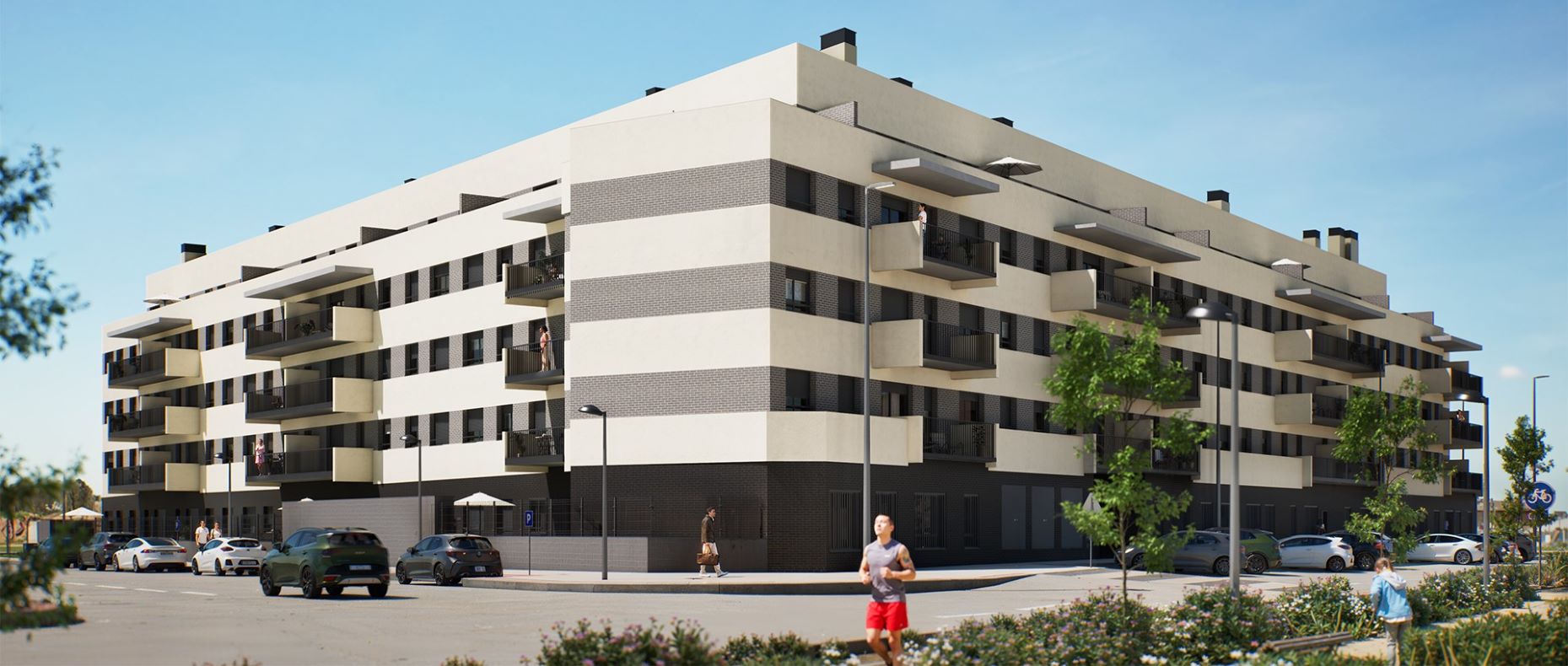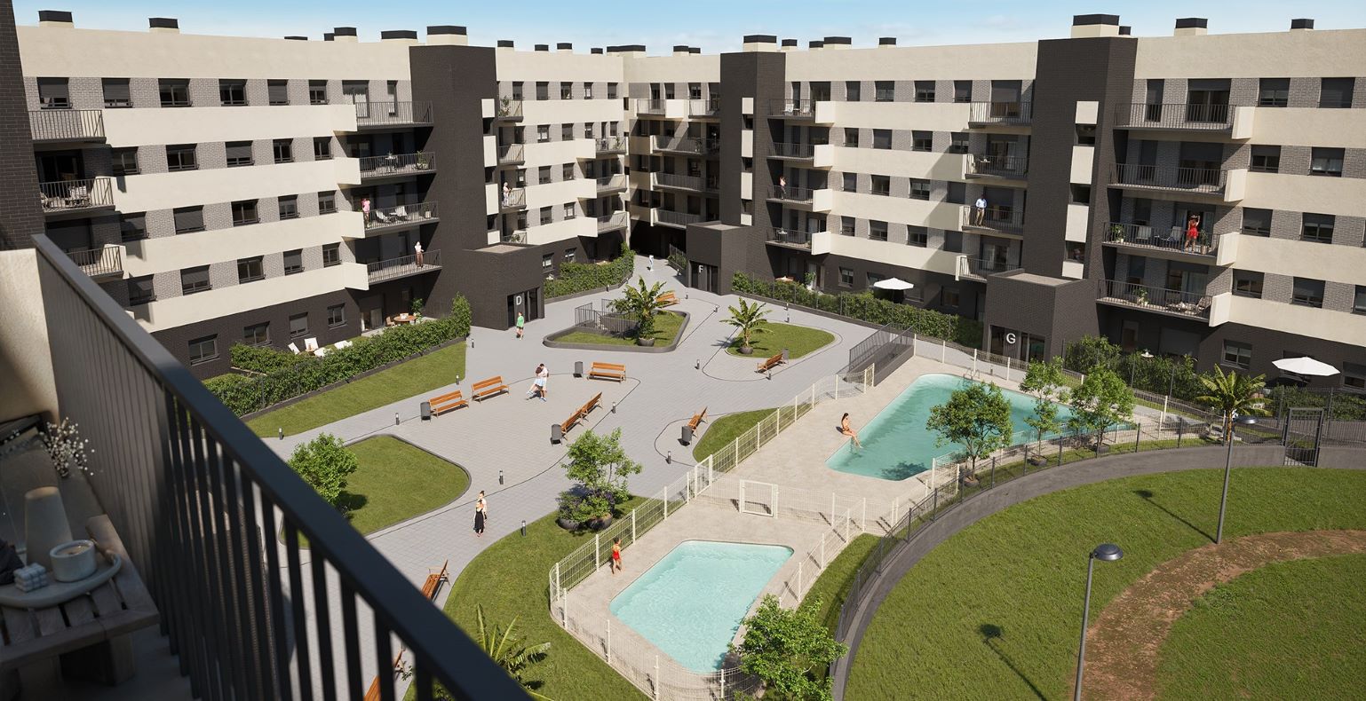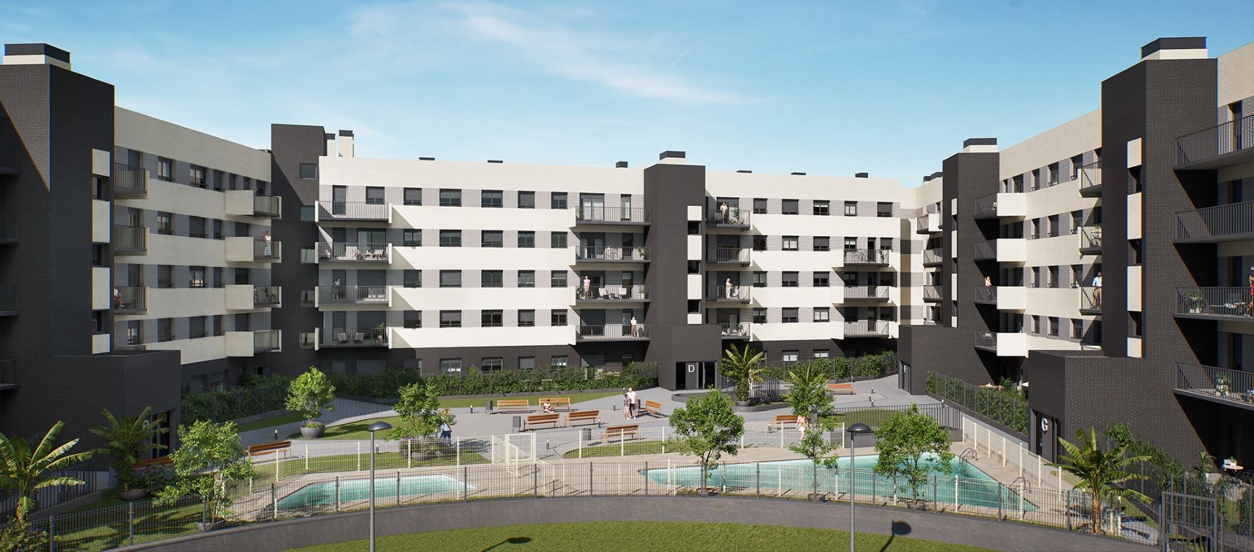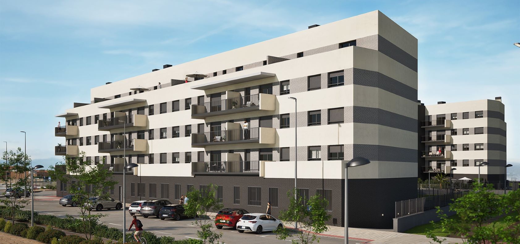 Este complejo residencial de obra nueva se compone de 144 viviendas en Régimen de Precio Tasado con viviendas de 1, 2, 3 y 4 dormitorios con terraza, plaza de garaje y trastero incluido en el precio.