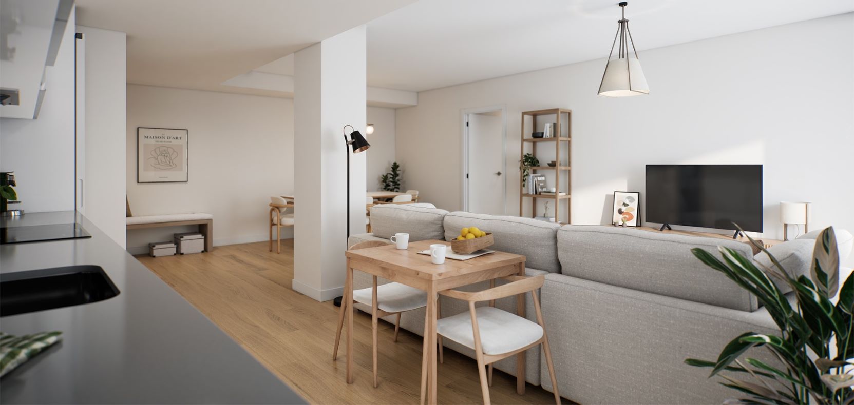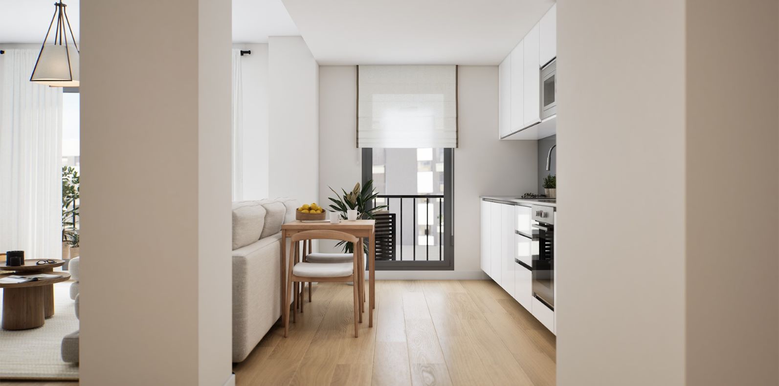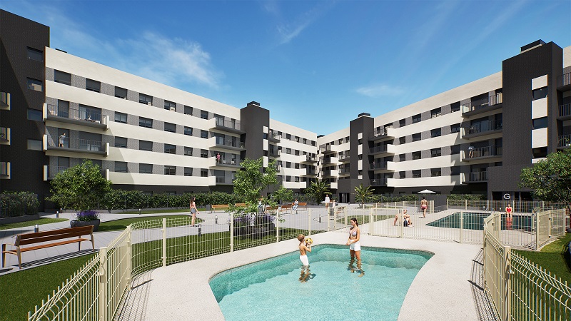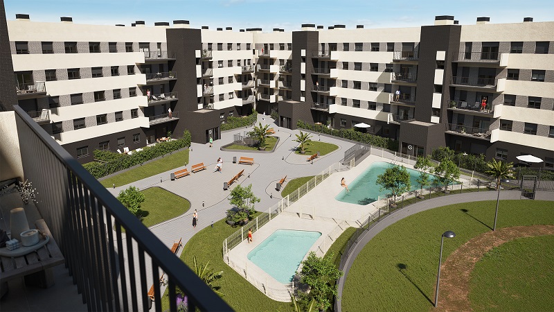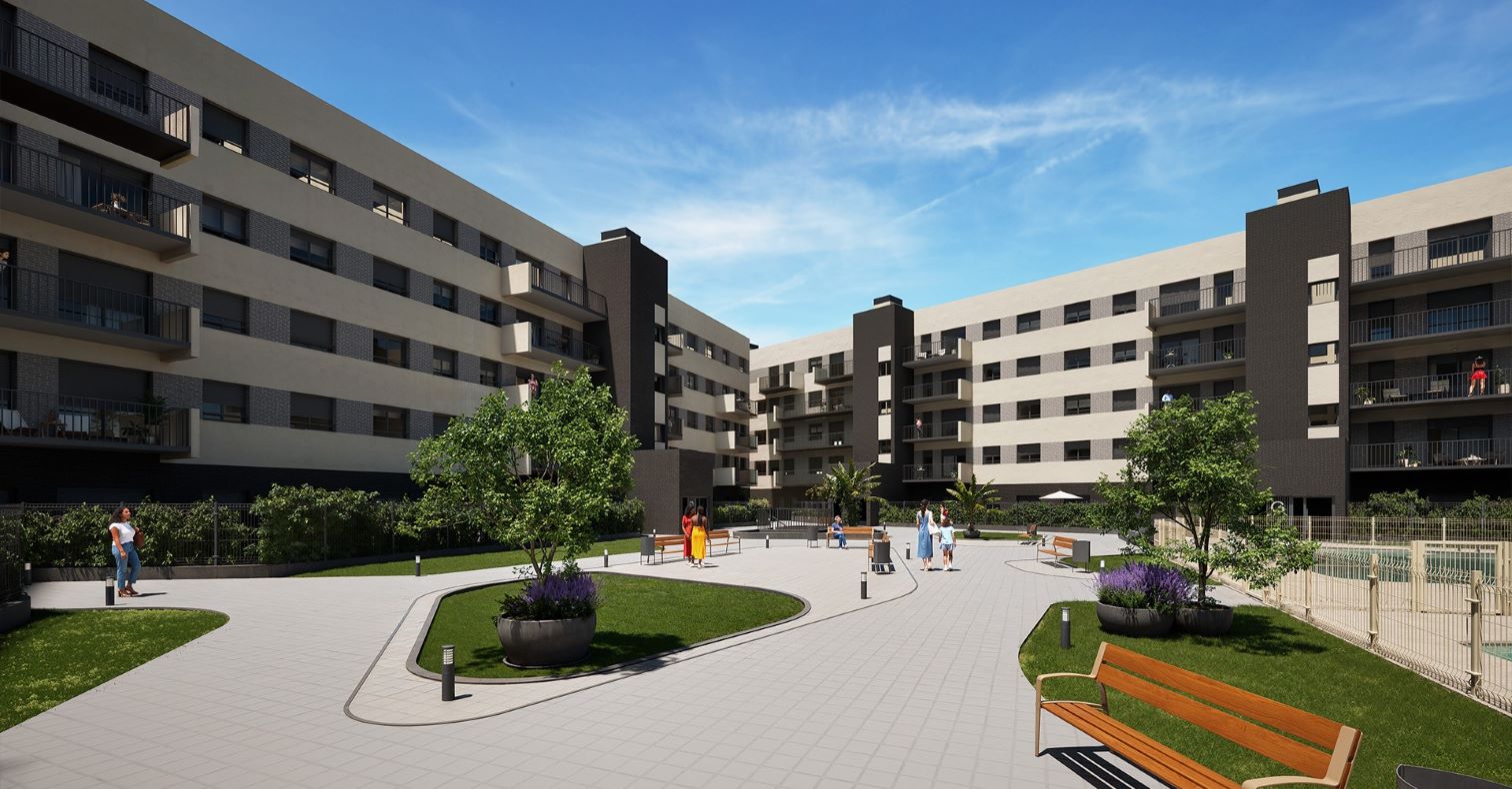 Este complejo residencial de obra nueva se compone de 144 viviendas en Régimen de Precio Tasado con viviendas de 1, 2, 3 y 4 dormitorios con terraza, plaza de garaje y trastero incluido en el precio.