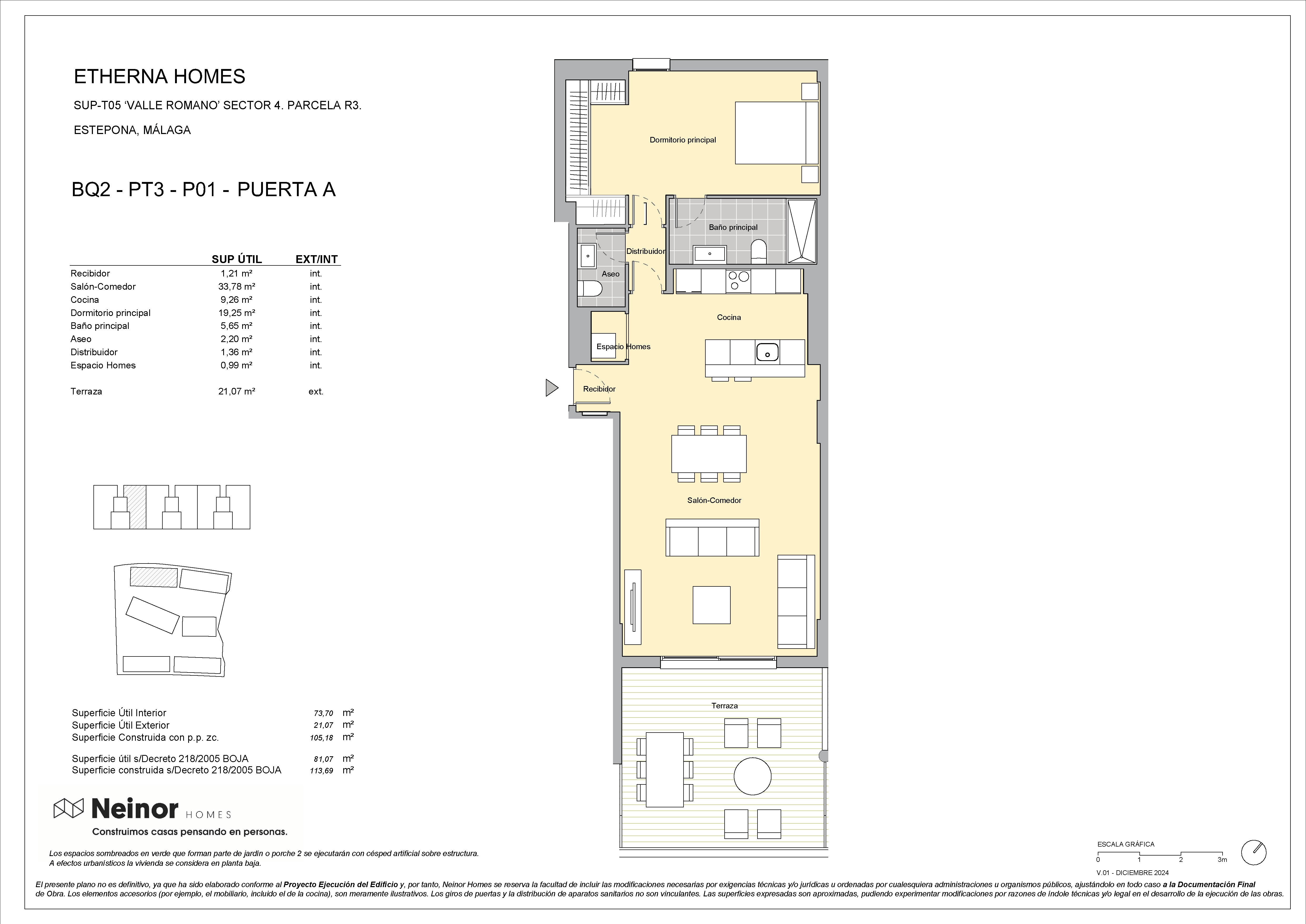 The exclusive residential complex is completed with pleasant common areas: swimming pool with solarium, gym, putting green, Zen areas and gardens with native species that convey the beauty of living in a unique place like Estepona. The residential complex is integrated into a closed area to guarantee the security and privacy of its neighbors, with a security checkpoint. Enjoy the advantages of being next to Valle Romano Golf & Resort.
