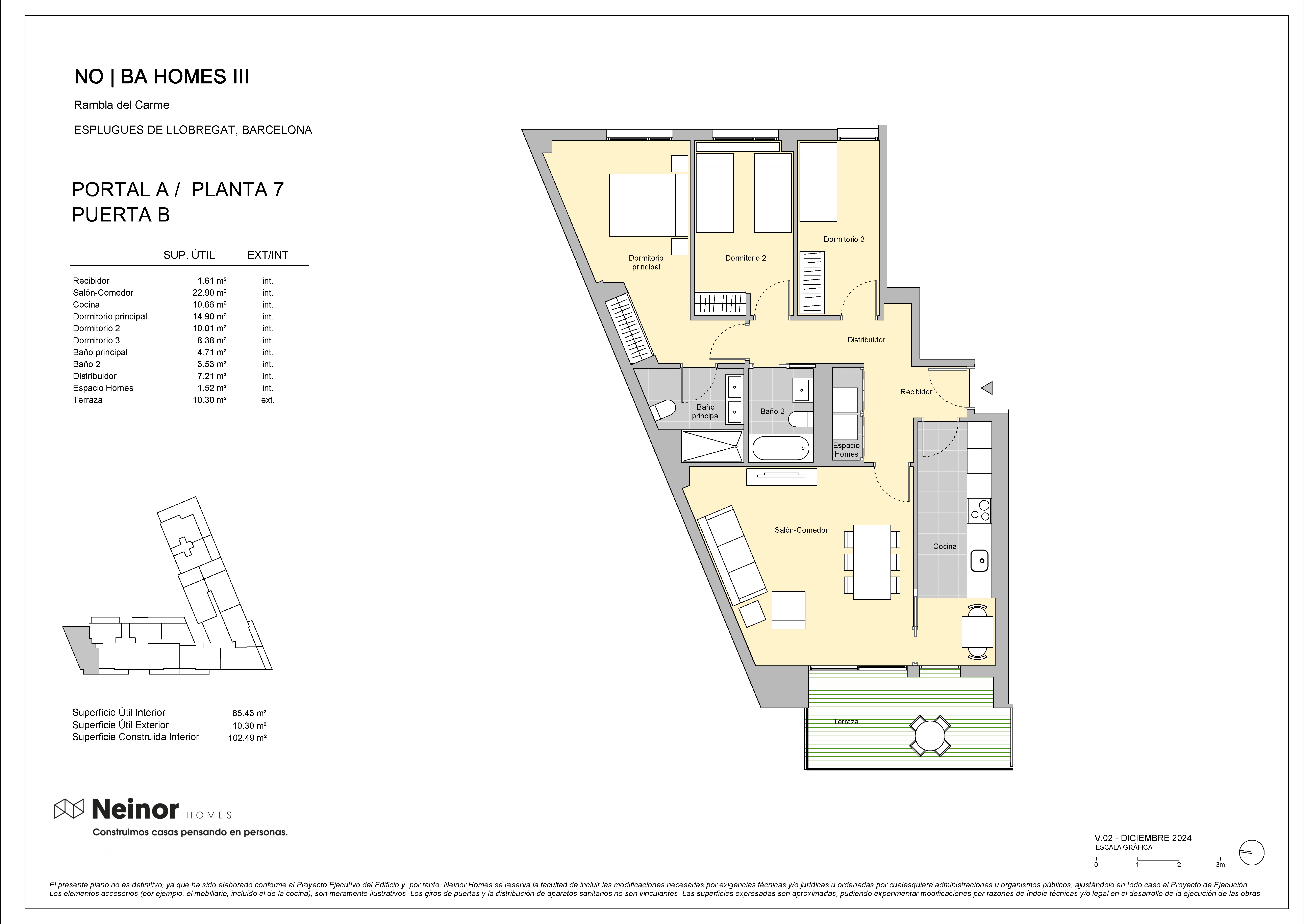NO|BA Homes III is a residential complex with ground floor plus 7 floors, ground floor plus 9 floors and ground floor plus 11 floors, composed of 126 of 2, 3 and 4-bedroom homes distributed among 3 staircases.