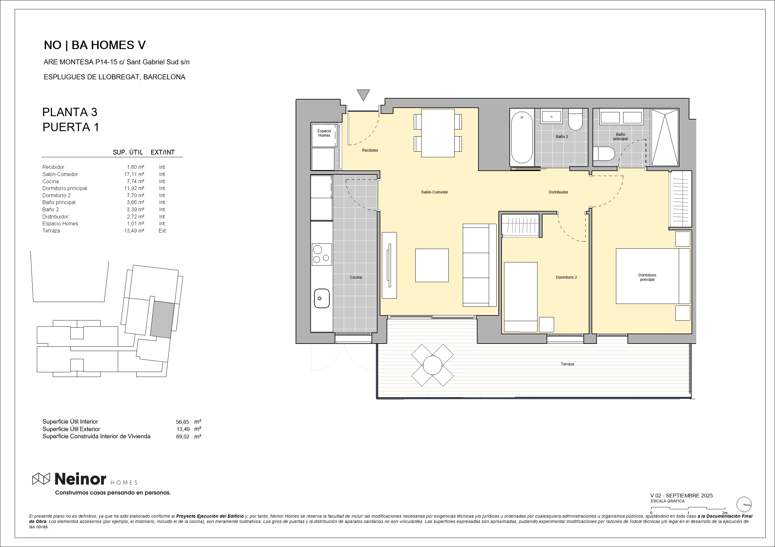 NO | BA Homes V es un conjunto residencial compuesto por 90 viviendas, 2 locales comerciales, 98 garajes para vehículos, 90 trasteros y 45 plazas de garaje para motocicletas.