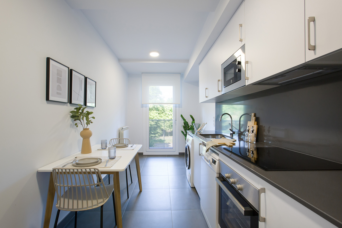 Olarizu Homes IV cuenta con 120 viviendas de 1, 2 y 3 dormitorios con distribuciones prácticas y funcionales en un entorno natural privilegiado de amplias avenidas y calles arboladas que invitan a pasear y disfrutar del aire fresco.