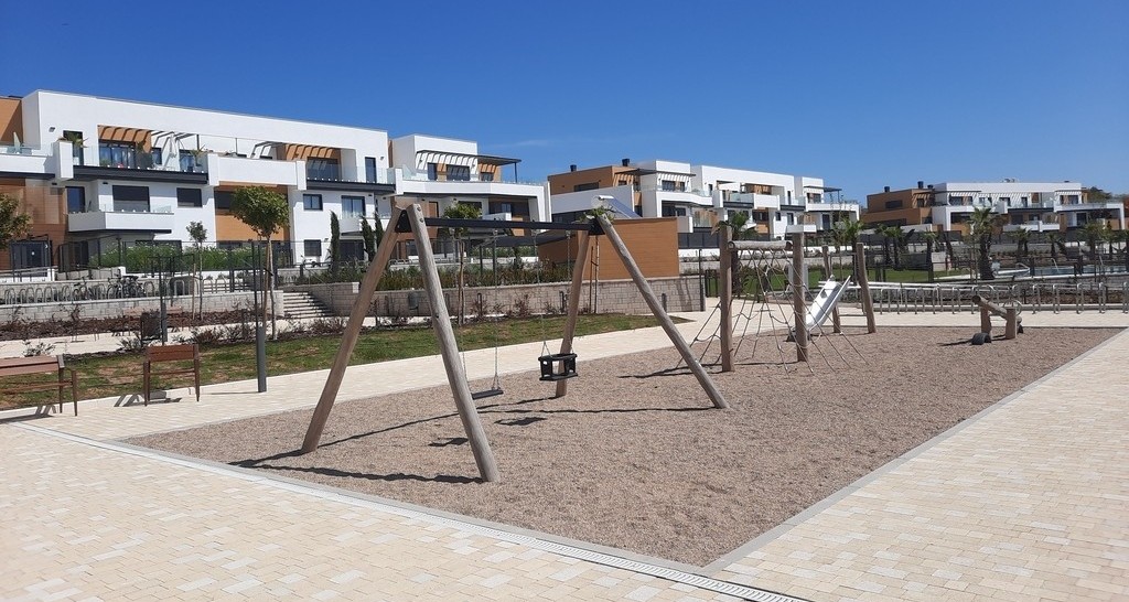 Este residencial cuenta con piscina de recreo para adultos e infantil, con área de solárium para poder disfrutar del baño y del sol, parque infantil, arenero infantil, zonas ajardinadas, así como con un espacio habilitado para la comunidad.
