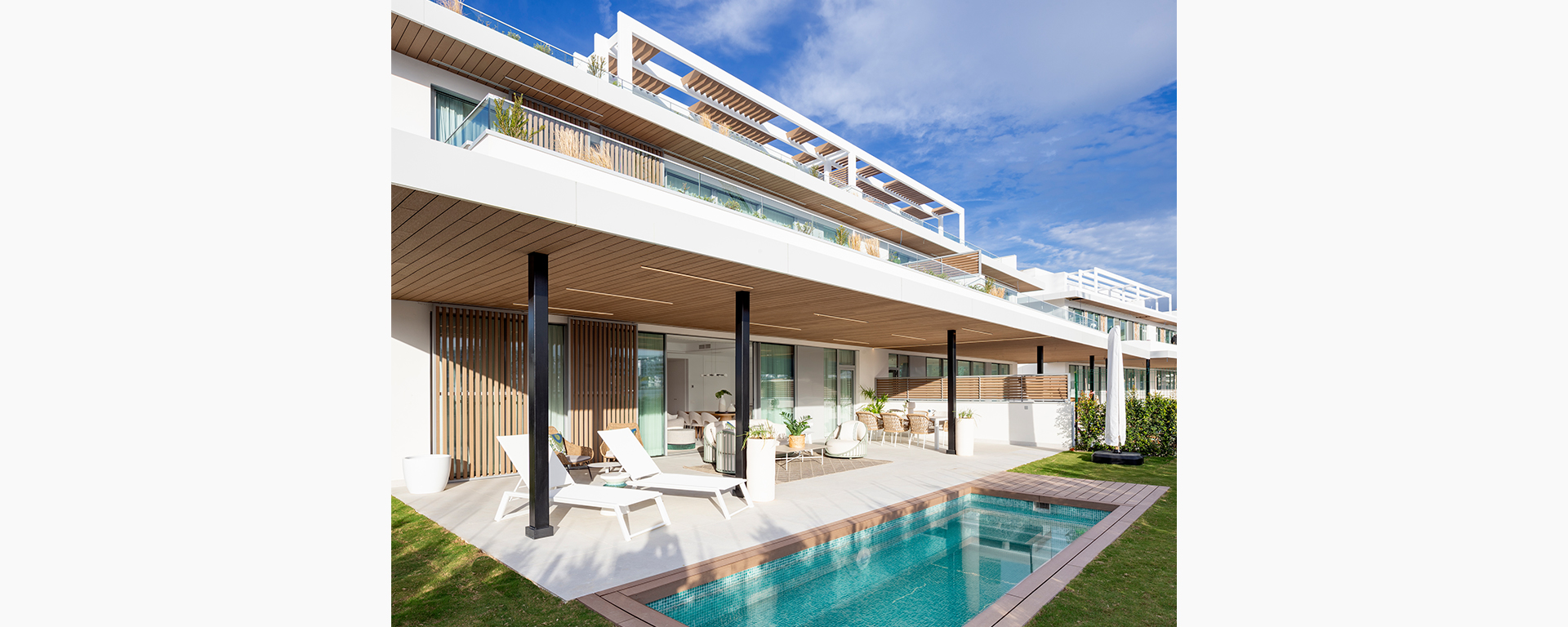 Contemporary design and high-quality specifications in a gated first-line golf complex offering total privacy and garden areas designed for family relaxation under century-old pine trees. The modern and stylish sports and leisure facilities at the heart of Santa Clara Homes will undoubtedly occupy a large part of your time.