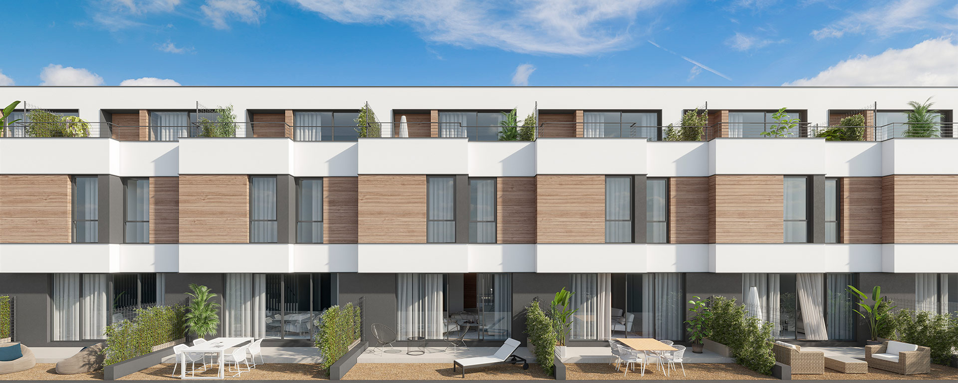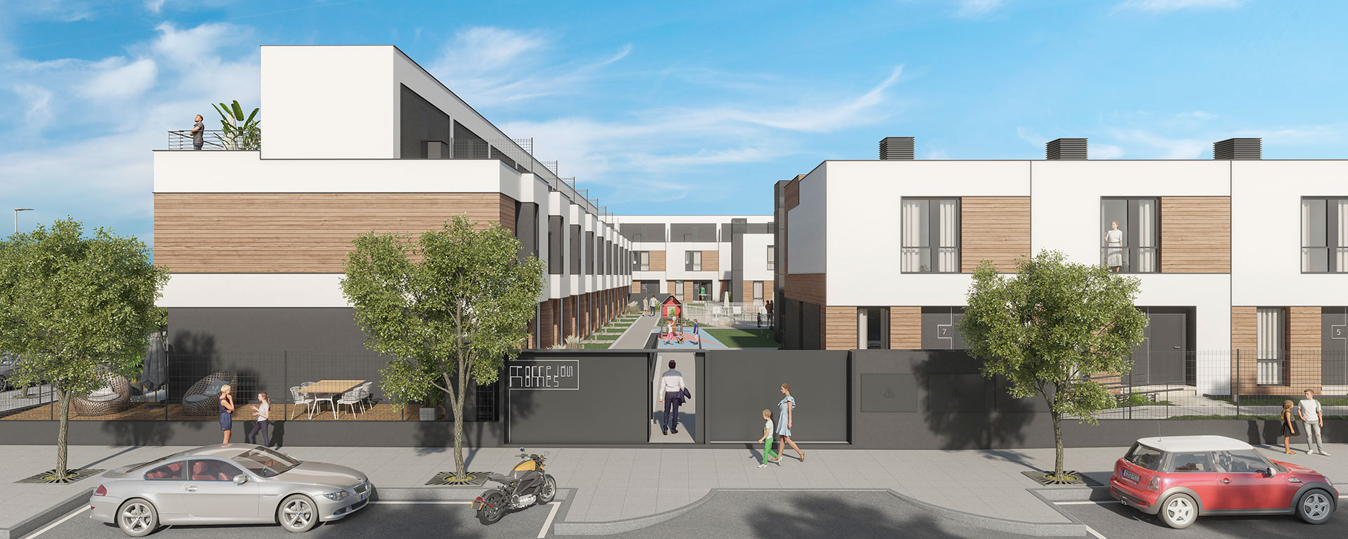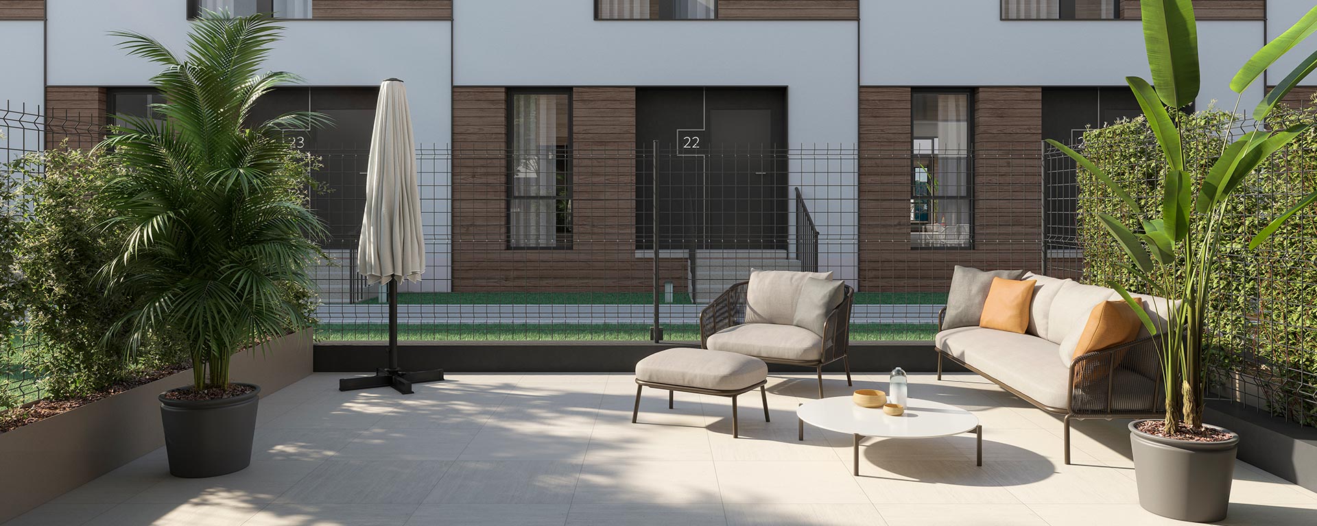 TORREJÓN PARK HOMES es un complejo residencial de viviendas unifamiliares de obra nueva de 3 y 4 dormitorios con parcelas individuales y terraza.