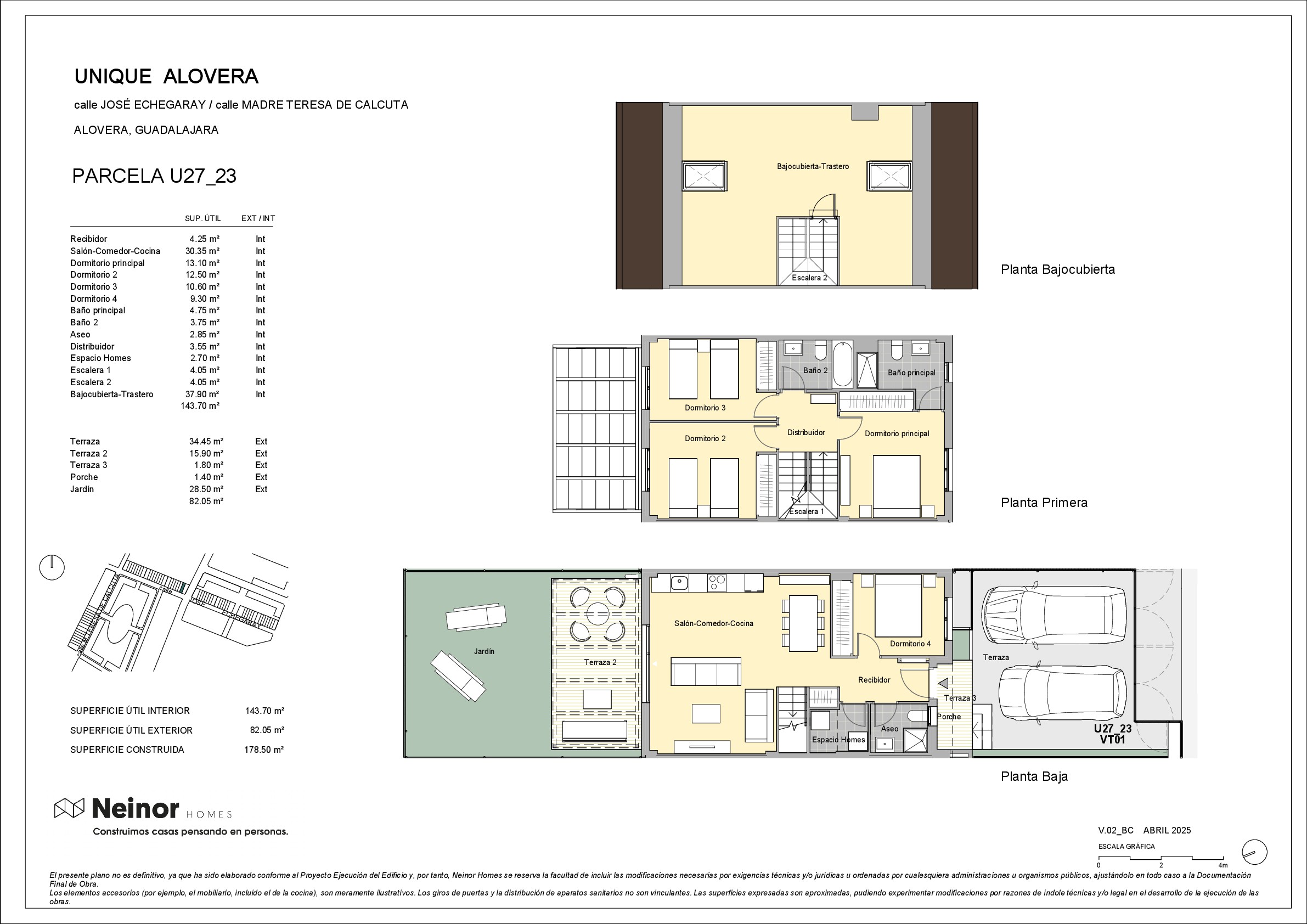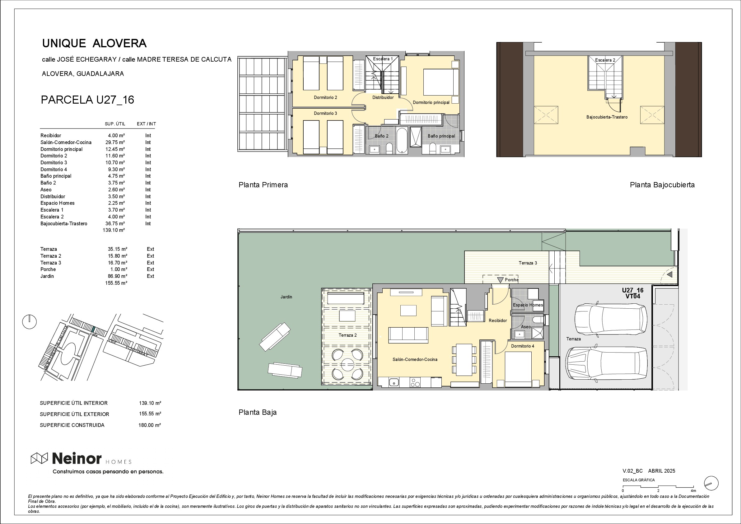 El complejo se caracteriza por un proyecto moderno ubicado en cuatro parcelas diferentes las cuales le dan una ubicación excepcional dentro del ámbito proporcionando a las viviendas una gran luminosidad. UNIQUE HOMES, se sitúa en un enclave de nuevo crecimiento próximo al núcleo urbano de Alovera, situado en el sector " II-1 LAS SUERTES" de Alovera entre los centros urbanos de Alovera y Azuqueca de Henares. En el entorno encontramos centros educativos, supermercados, servicios bancarios, peluquerías, locales de restauración y ocio para satisfacer todas tus necesitades. También la zona invita al ejercicio y deporte diario, carril bici, amplia avenida para ejercitar largos paseos, running, circuito fitness exterior. Entorno caracterizado por amplios bulevares arbolados con áreas infantiles de juegos.
