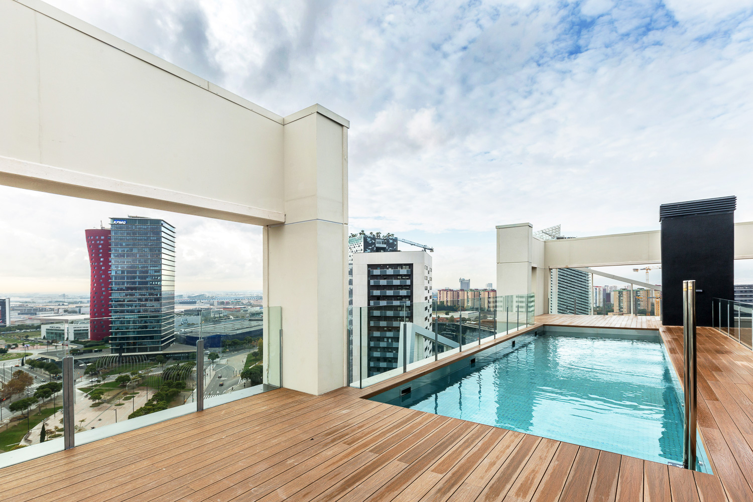 Sus más de 60 metros de altura le confieren unas vistas privilegiadas y exclusivas de la ciudad, especialmente desde las zonas comunes, piscina y zona solárium, ubicadas en la azotea del edificio.