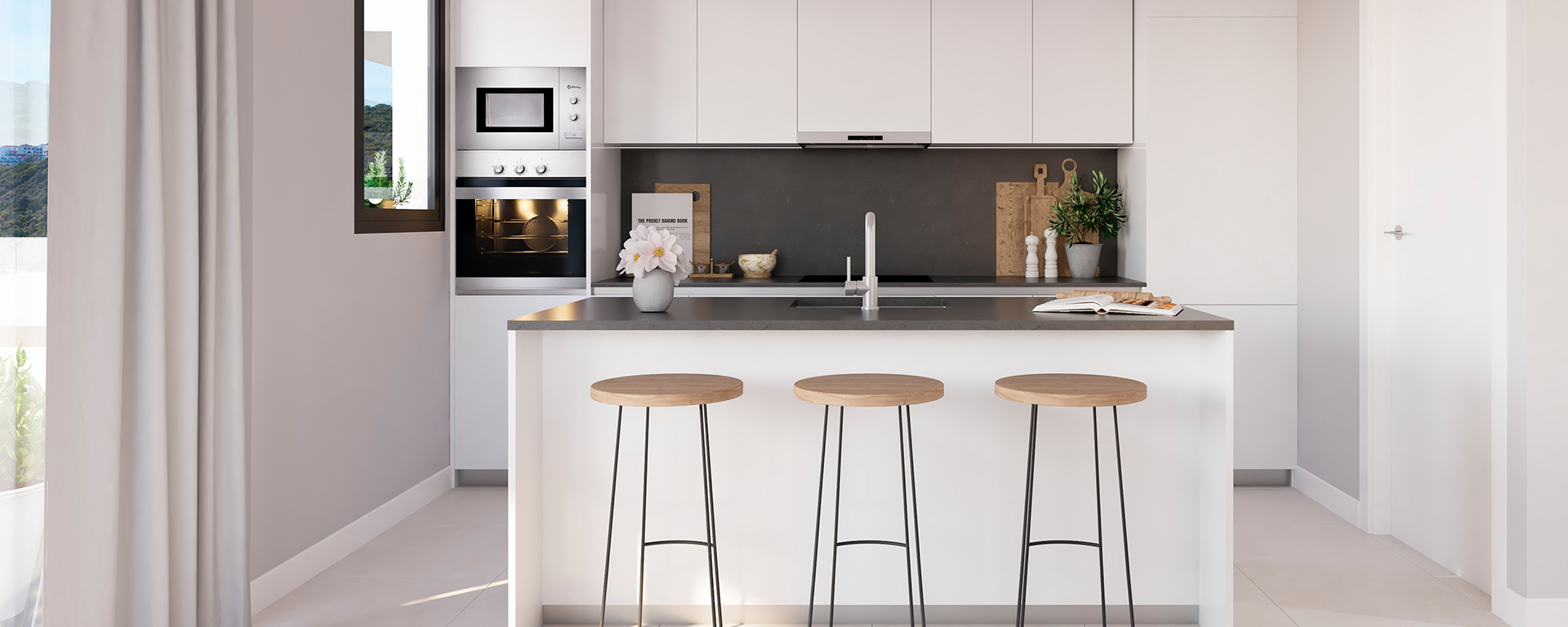 Su orientación oeste-suroeste proporciona el máximo aprovechamiento de la luz natural y unas vistas que permiten contemplar el paisaje natural que lo rodea, algunas de ellas con vistas al mar.