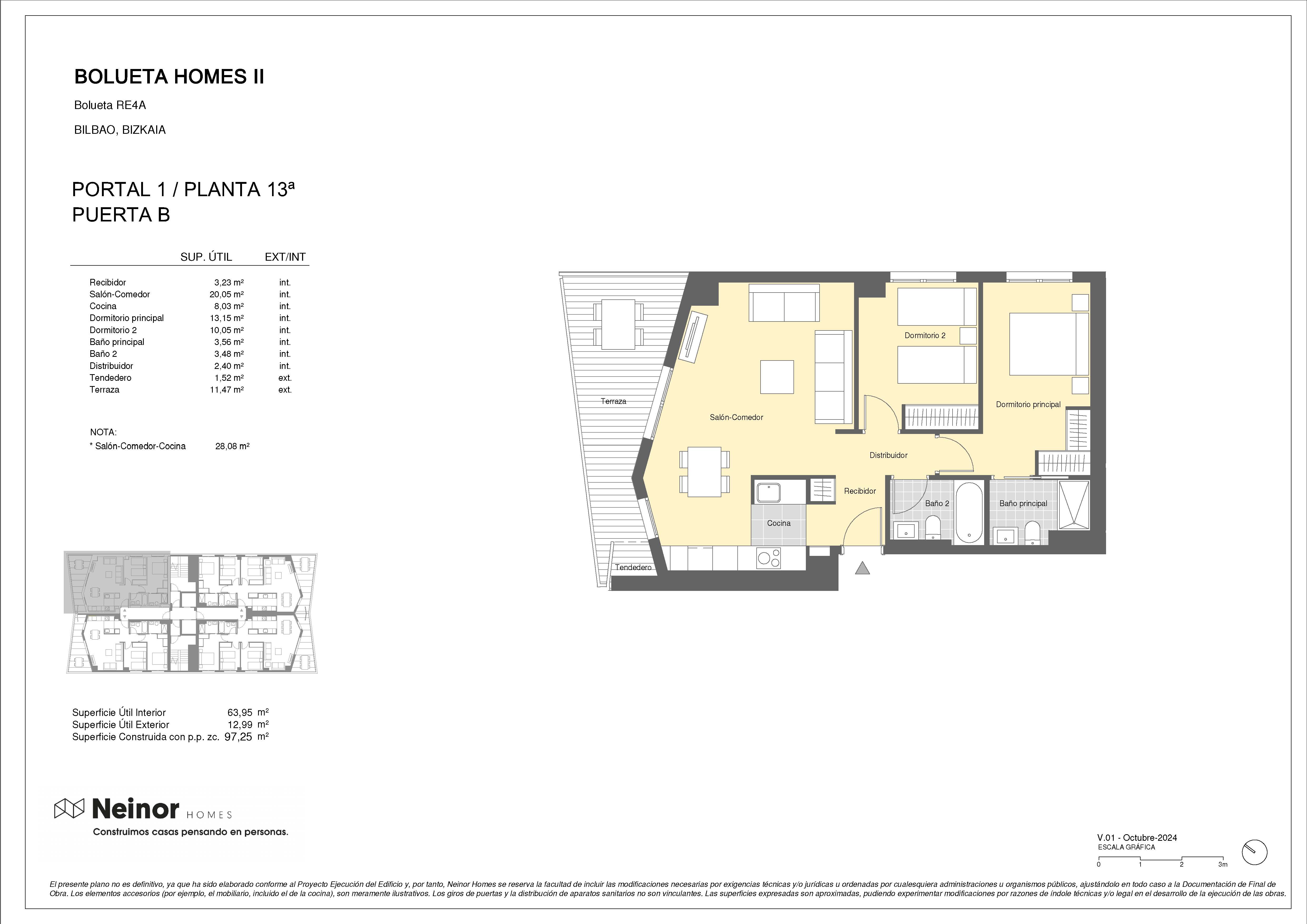 Descubre Bolueta Homes II, una nueva promoción con un total de 92 viviendas de 2 y 3 dormitorios distribuidas en una imponente torre de 23 alturas. Diseñadas para satisfacer tus necesidades modernas, cada vivienda cuenta con cocina completamente equipada y una luminosidad que realza cada rincón. Además, puedes disfrutar del aire fresco y las vistas panorámicas desde tu propia terraza privada en cada una de las unidades.