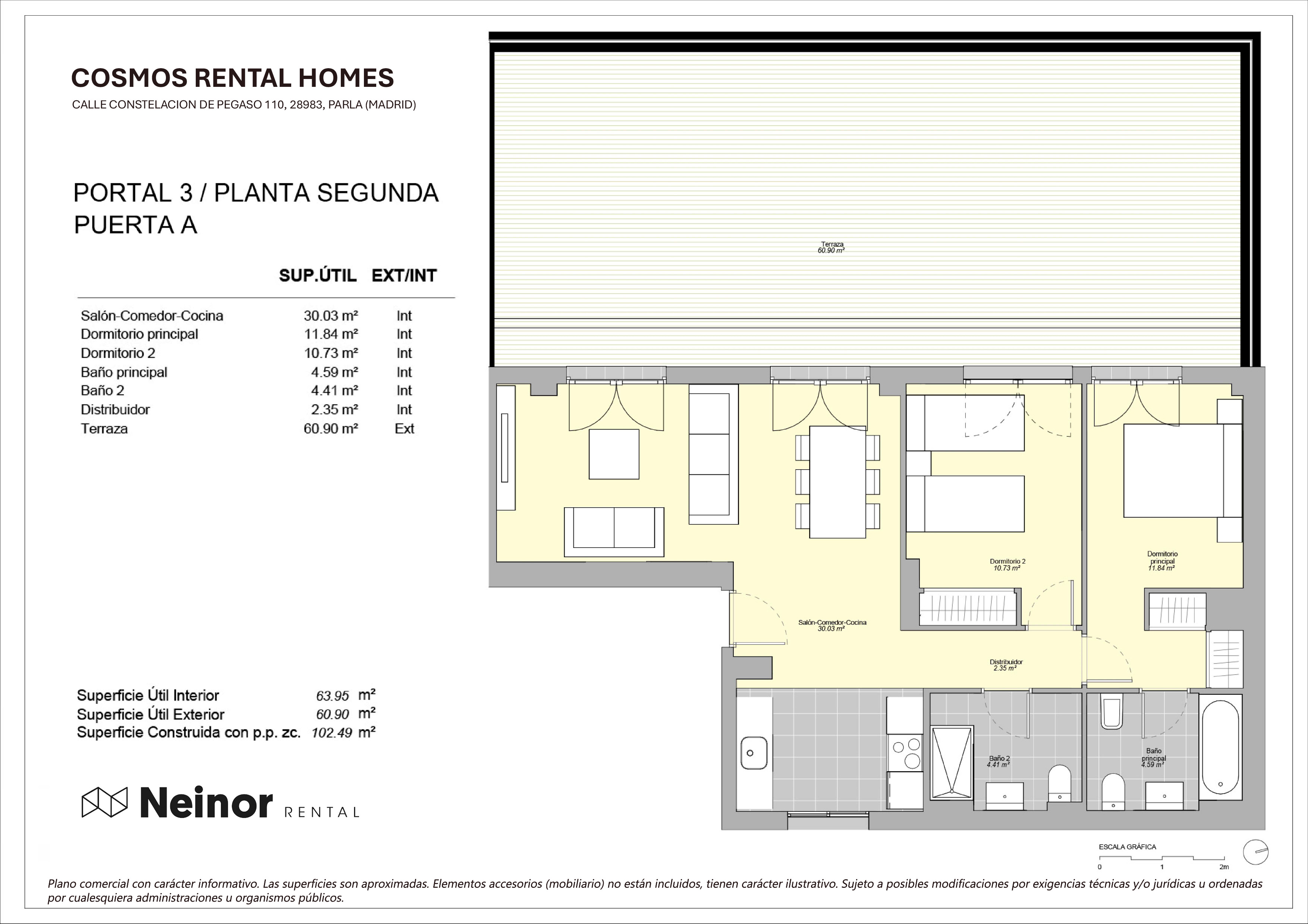 Cosmos Rental Homes es un conjunto residencial compuesto por 53 viviendas con bajos con jardín, primeras plantas con balcón y áticos con amplias terrazas.