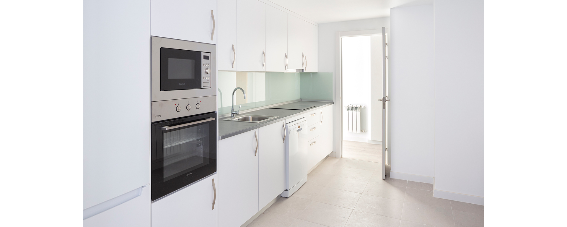 El confort está garantizado gracias al sistema de calefacción mediante radiadores y a la caldera de gas centralizada con control individualizado mediante termostato en el salón. Además, disponen de aire acondicionado en el salón y en el dormitorio principal. Las cocinas están completamente amuebladas y equipadas con electrodomésticos de primeras marcas, incluyendo placa de inducción, microondas, campana extractora, lavavajillas, frigorífico con congelador y lavadora.