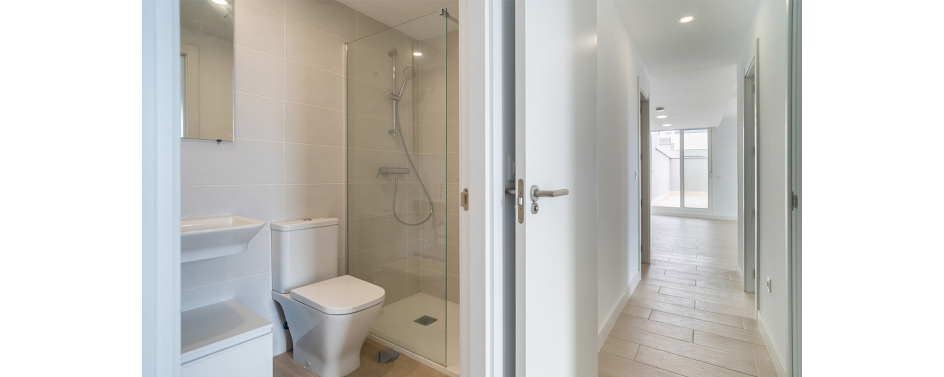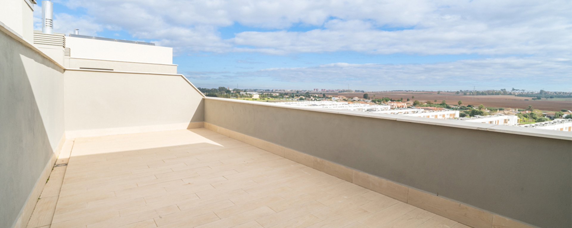 El proyecto ofrece viviendas de 1, 2 y 3 dormitorios, algunas tipo ático con terrazas privadas y vistas privilegiadas a Sevilla.