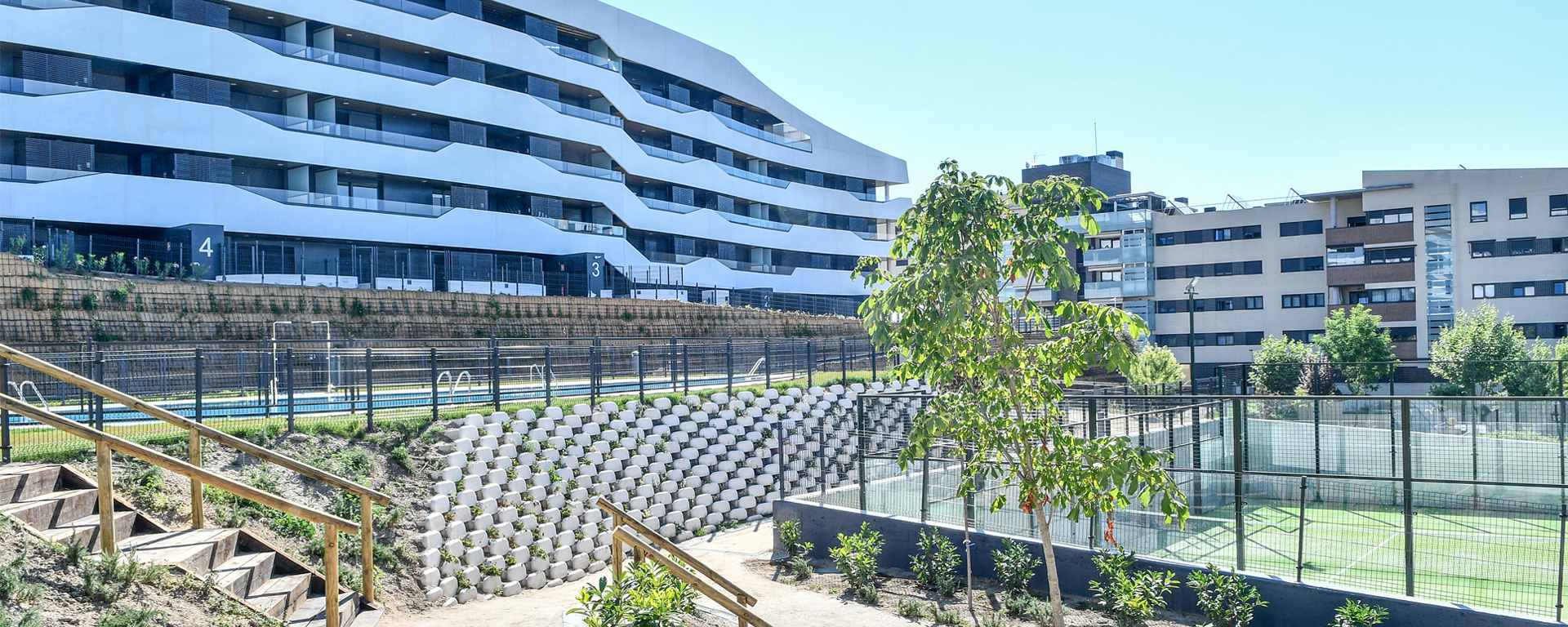 Amplias zonas comunes y cuidados jardines, piscina infantil, de adultos, pista de pádel, gimnasio y sala gourmet completan un extraordinario conjunto residencial.