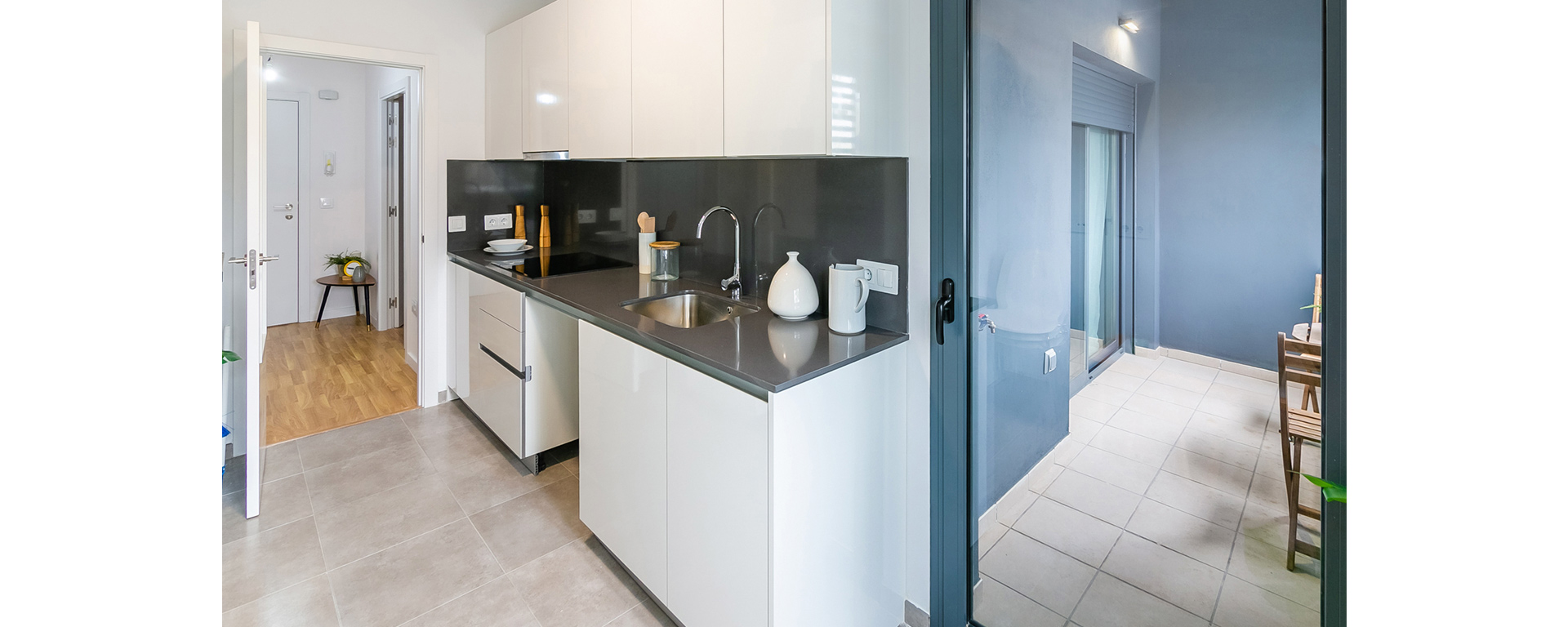 En su interior encontramos cocinas independientes y con tendedero, salones con acceso a terraza, armarios empotrados y dormitorio principal con cuarto de baño en suite.