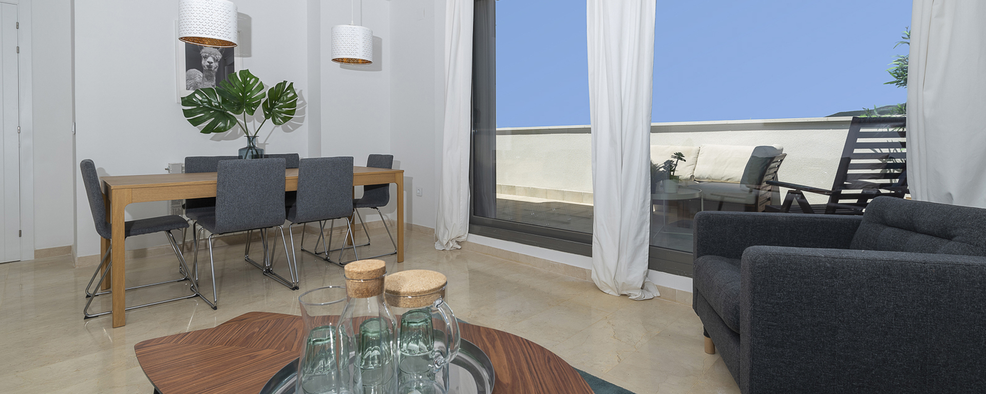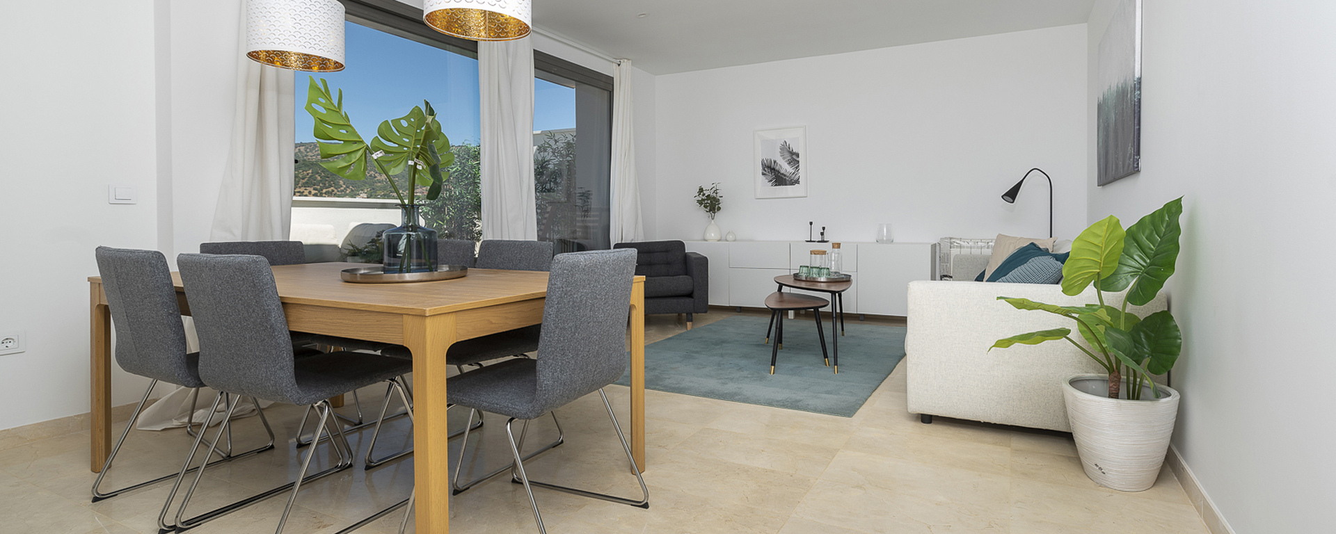 En Azahar Homes encontramos viviendas con amplios salones con varios puntos de luz y grandes ventanales, de suelo a techo, que dotan a la vivienda de abundante luminosidad y aislamiento.
