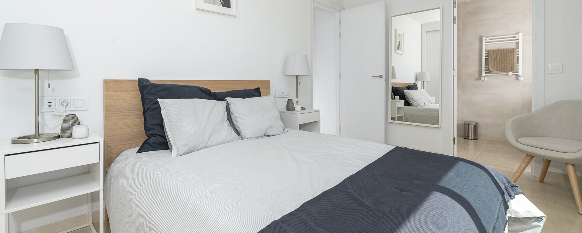 Cocinas amuebladas y equipadas con todos los electrodomésticos con un diseño vanguardista y funcional y amplios dormitorios con armarios acabados en la misma carpintería que el resto de la vivienda.