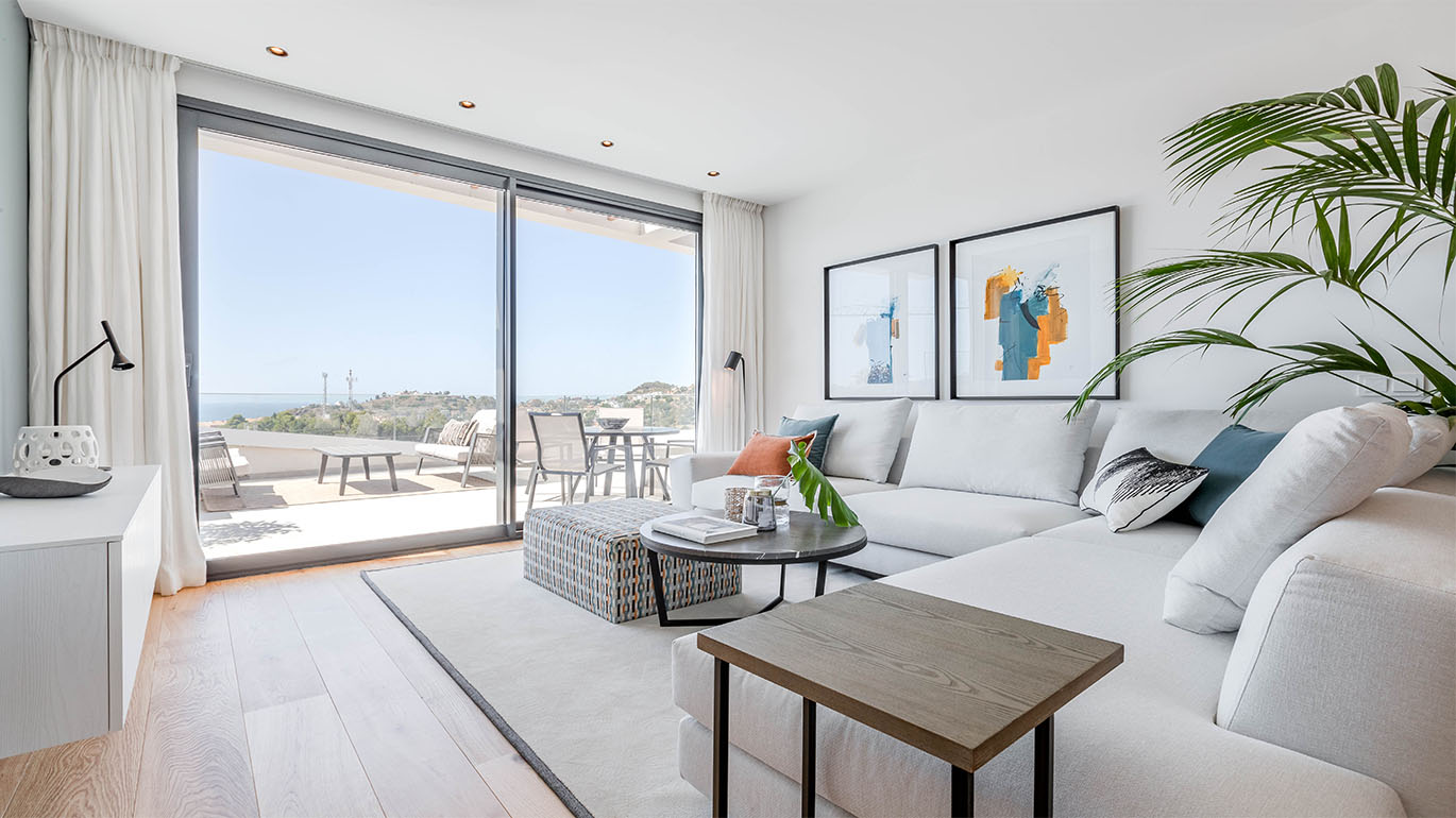 Las viviendas de Limonar Homes han sido diseñadas con una orientación Sur que dota a la vivienda de una gran luminosidad y confort bajo el concepto “Open spaces” con conexión salón- comedor-terraza, lo que permite unas inmejorables vistas desde el salón de tu casa hacia la Bahía de Málaga.