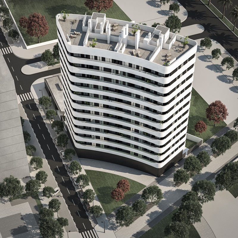 Promoción de viviendas de obra nueva entregada en Valencia.