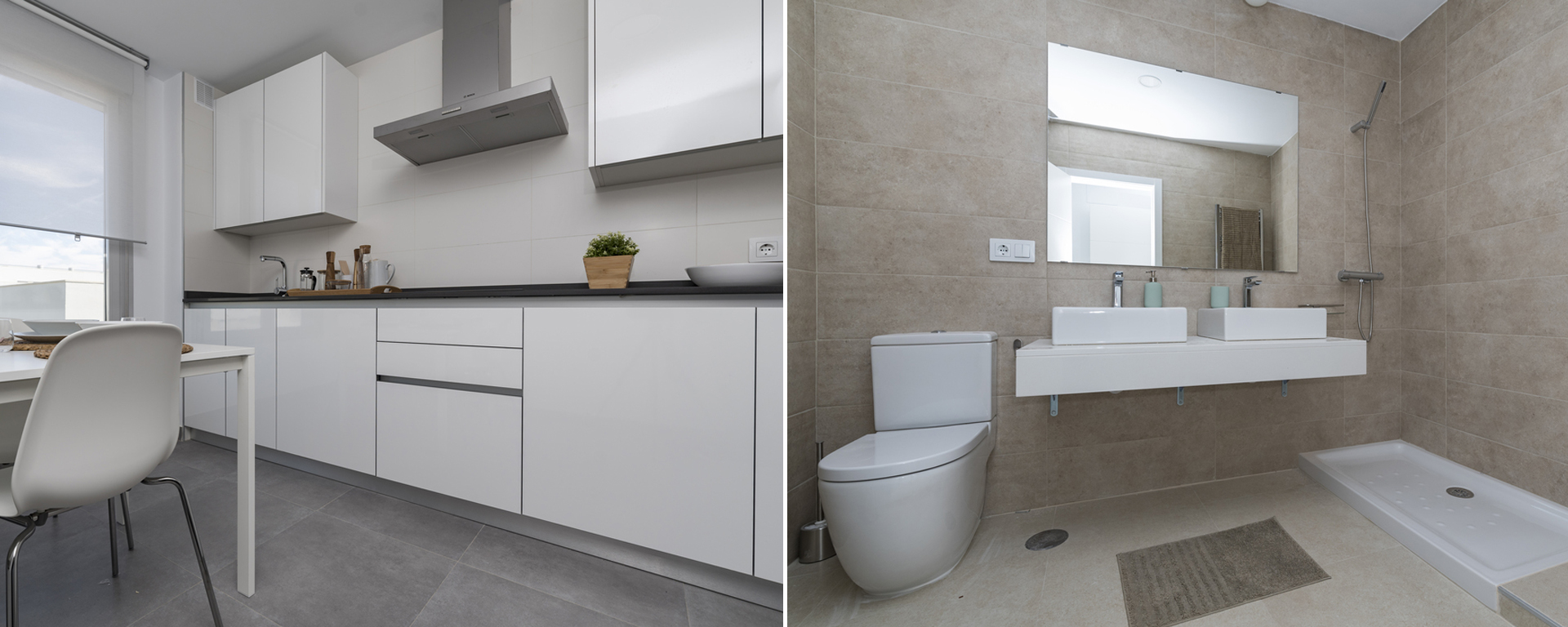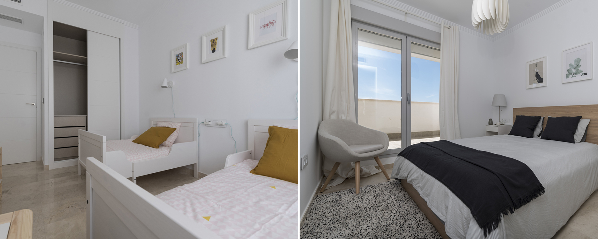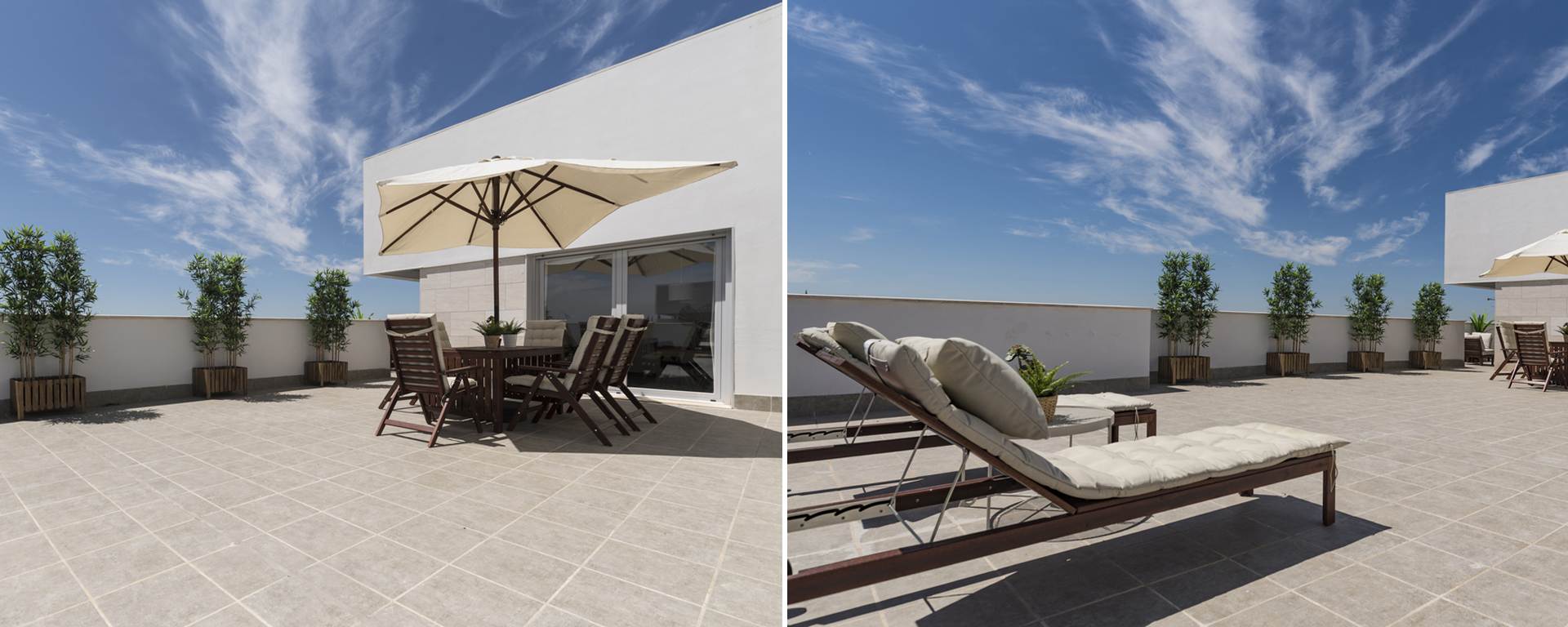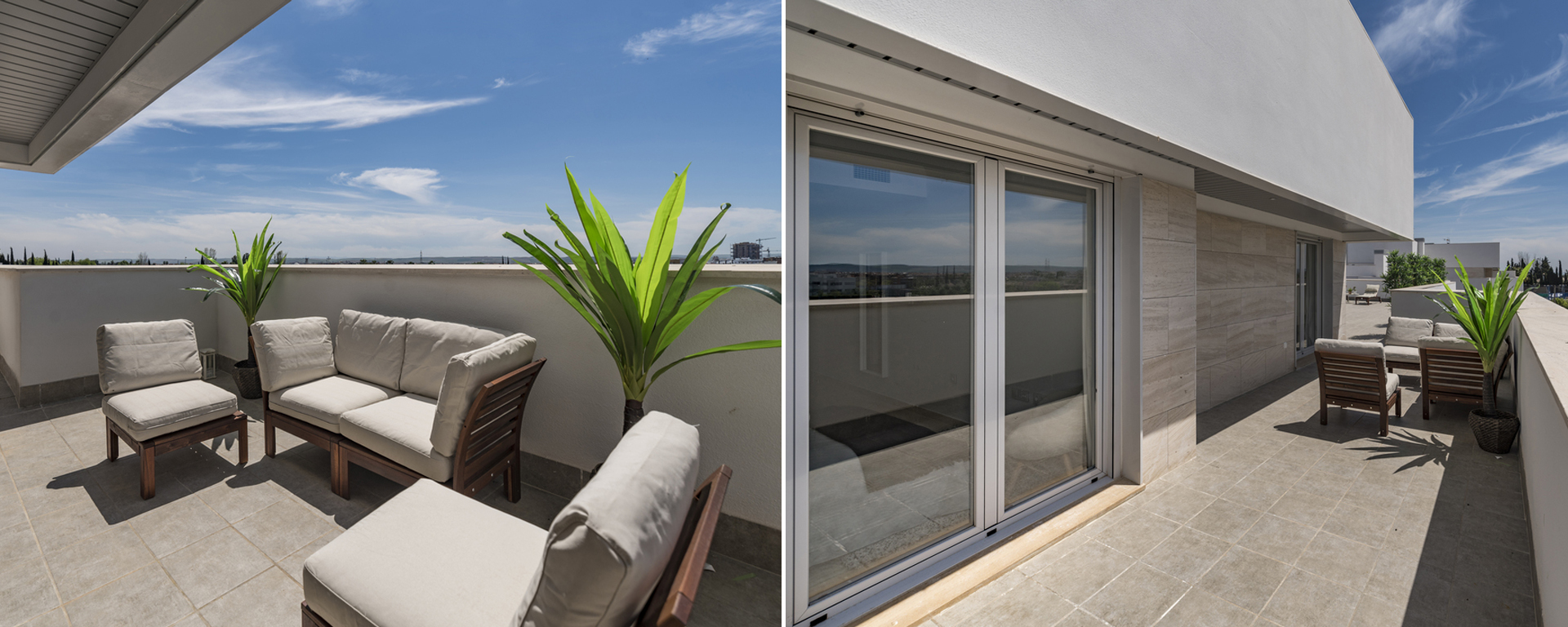 Medina Homes es un residencial de viviendas plurifamiliares de 2, 3 y 4 dormitorios donde encontramos bajos con jardín privado y áticos con amplias terrazas, cocinas amuebladas, alarma antirrobo, domótica básica, aire acondicionado y calefacción.