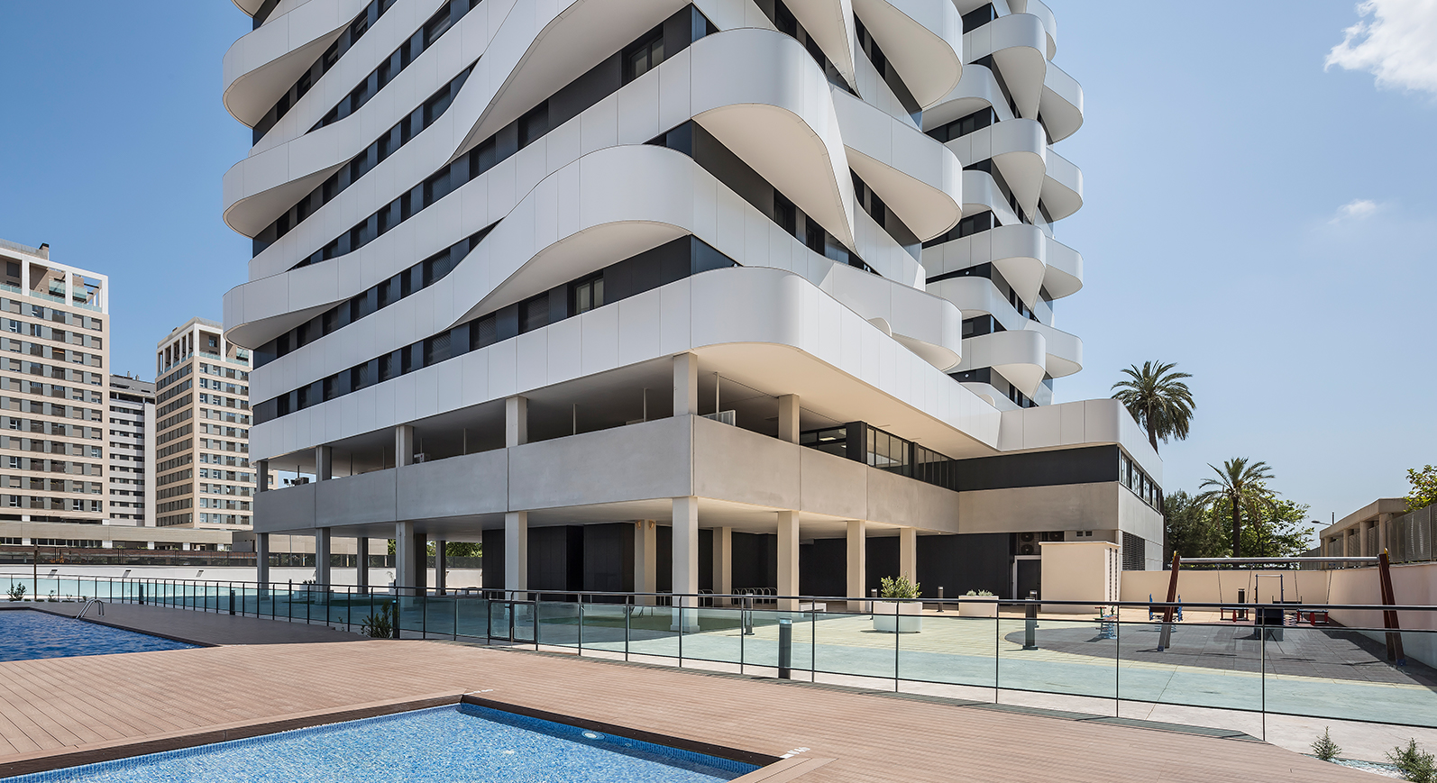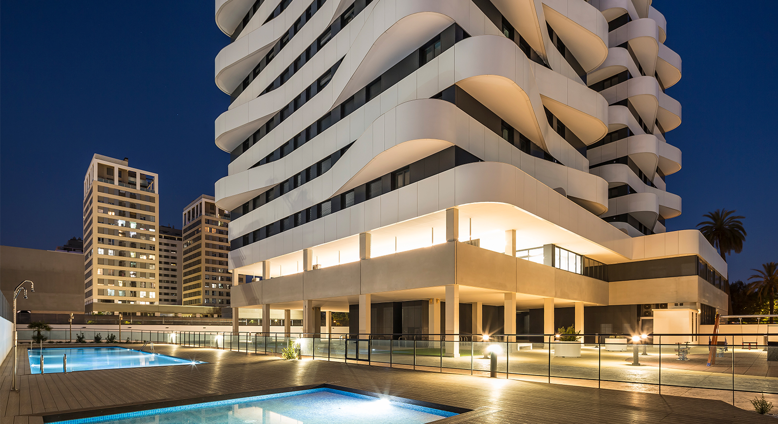 Conjunto residencial único y exclusivo en Valencia de diseño innovador con último áticos disponible con amplia terrazas e impresionantes vistas al mar. Viviendas amplias y luminosas con zonas comunes.