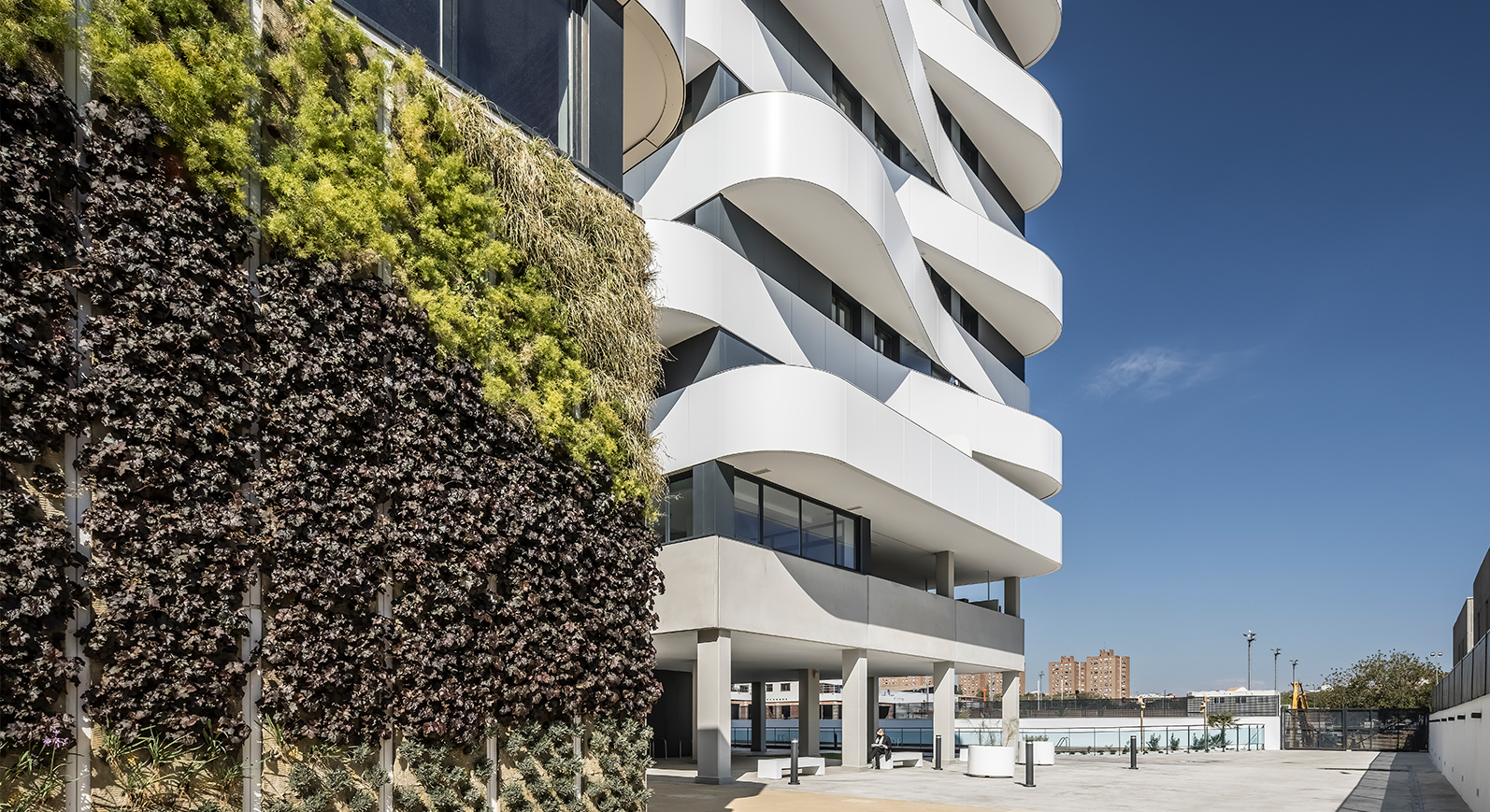A la entrada, un cautivador jardín vertical sirve de guía hacia las zonas comunes en las que disfrutar de un estilo de vida relajado: espacios ajardinados, piscina con solárium, gimnasio, local comunitario y zona de juegos infantiles, quedan enmarcados en una urbanización cerrada para tu seguridad y privacidad.