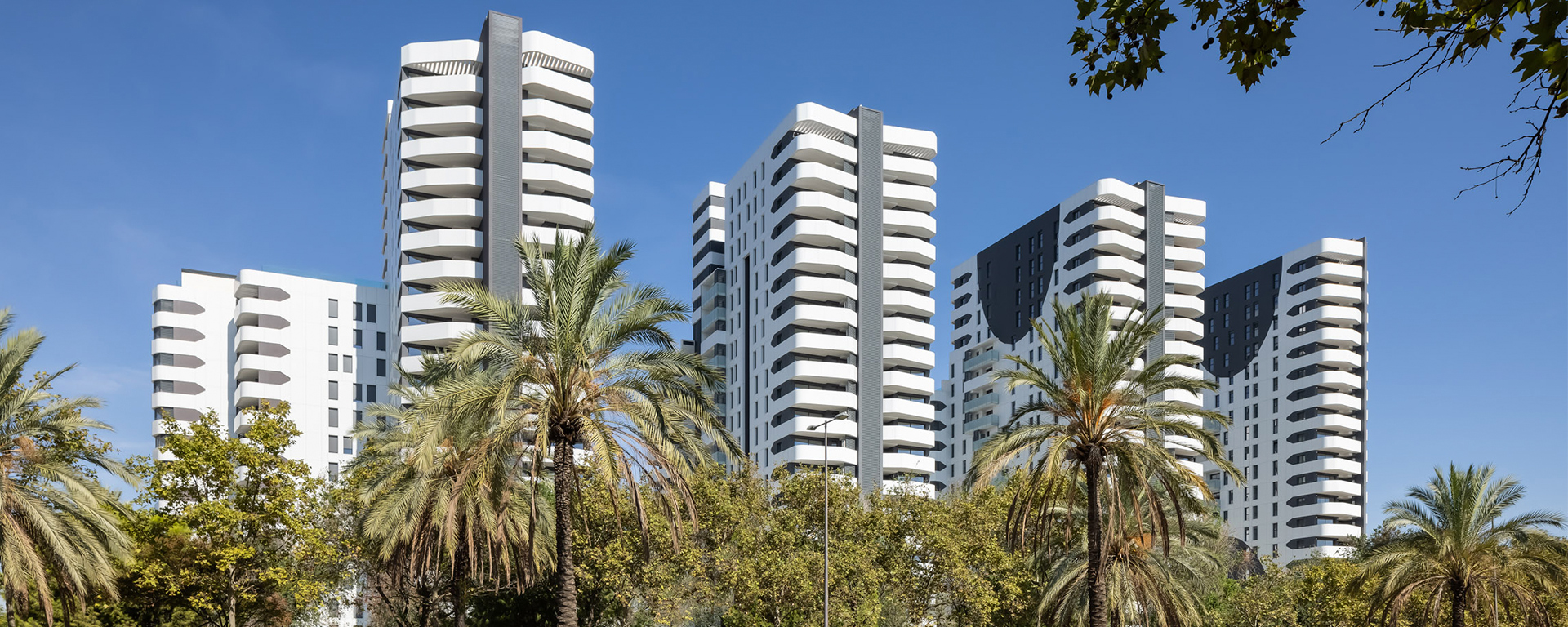 Promoción de viviendas de obra nueva entregada en Valencia.