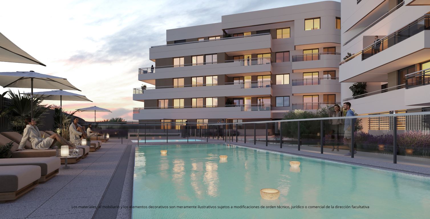 Vida activa y bienestar en nuestras viviendas a estrenar en Alovera con amplias terrazas y zonas comunes.