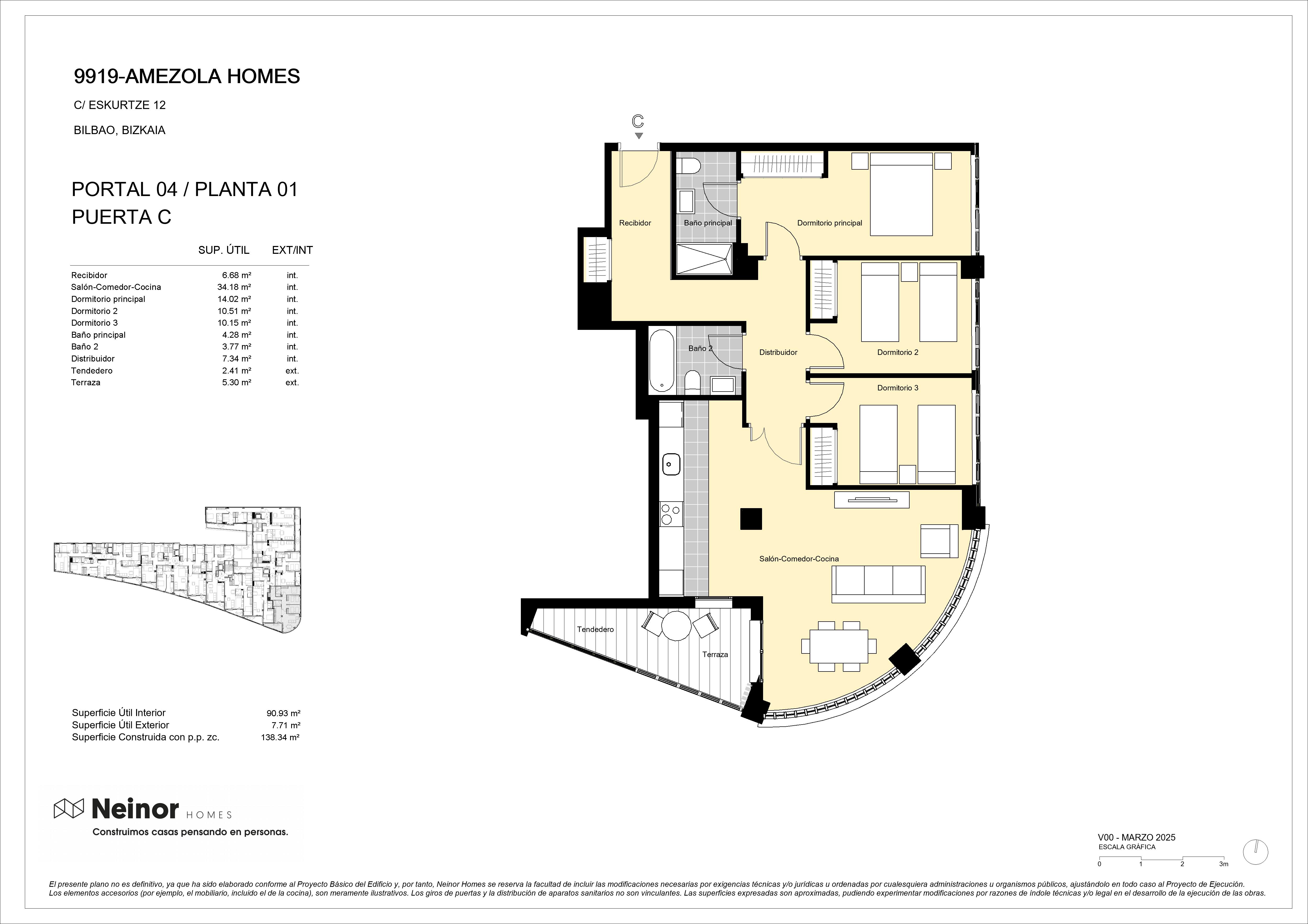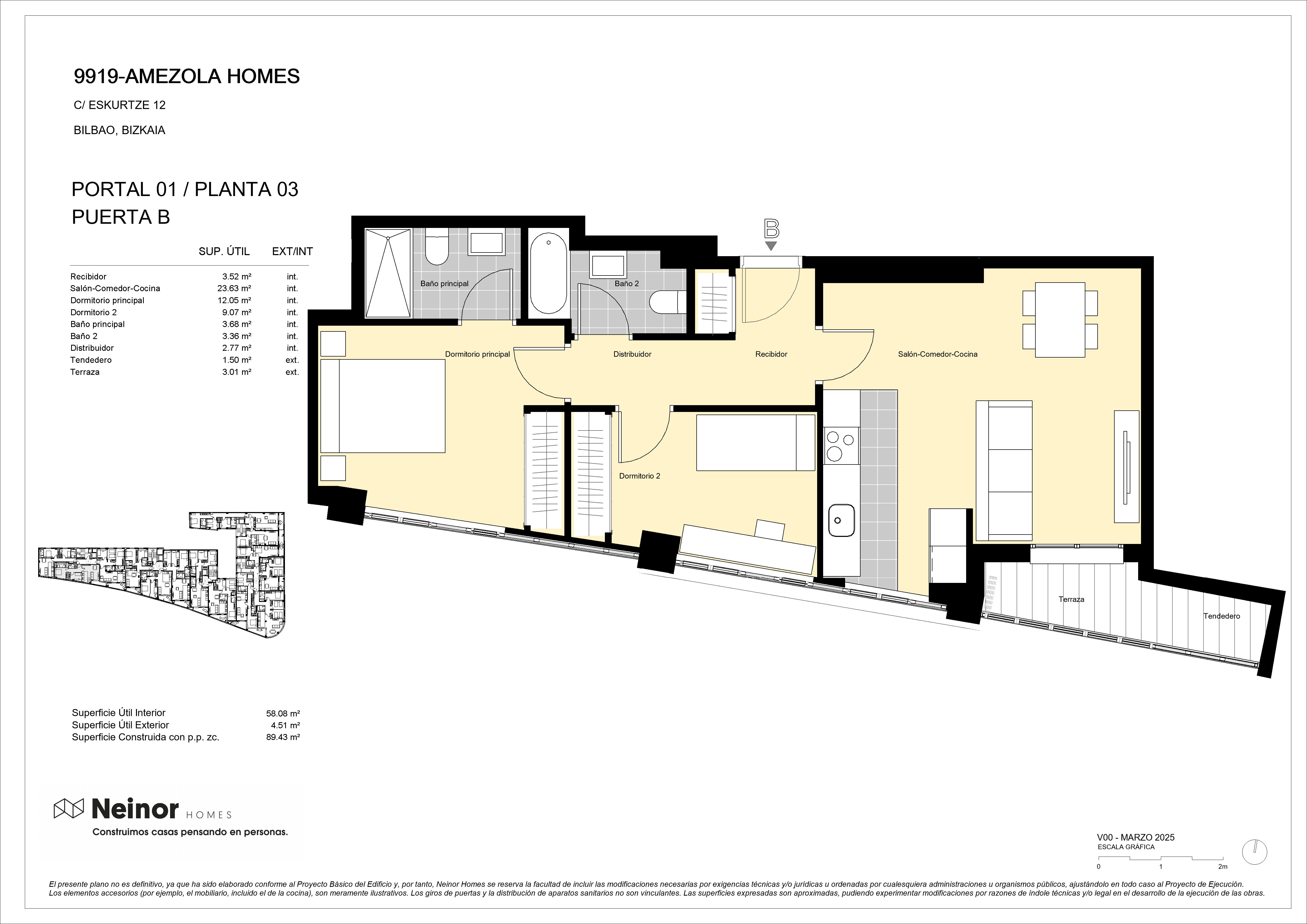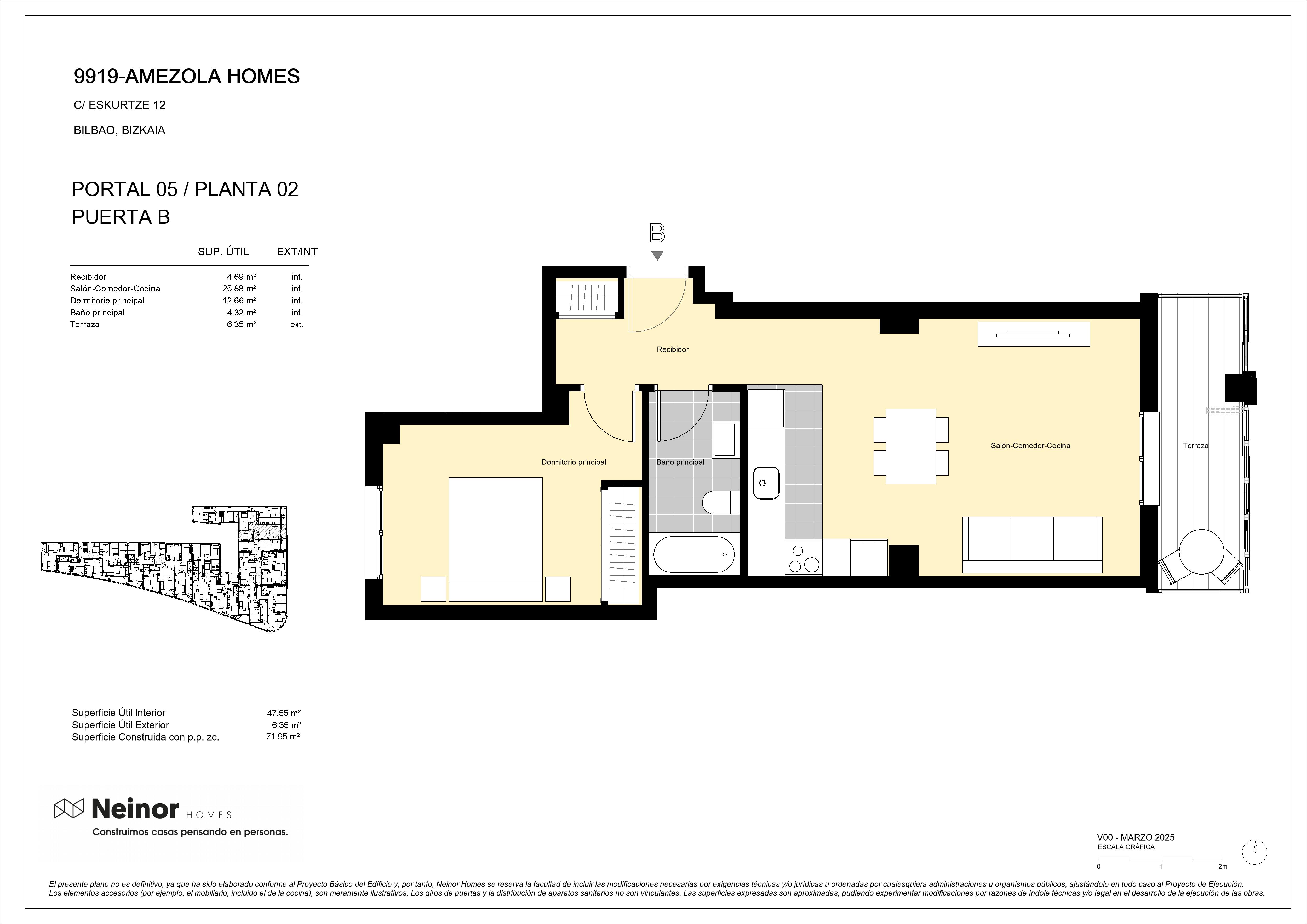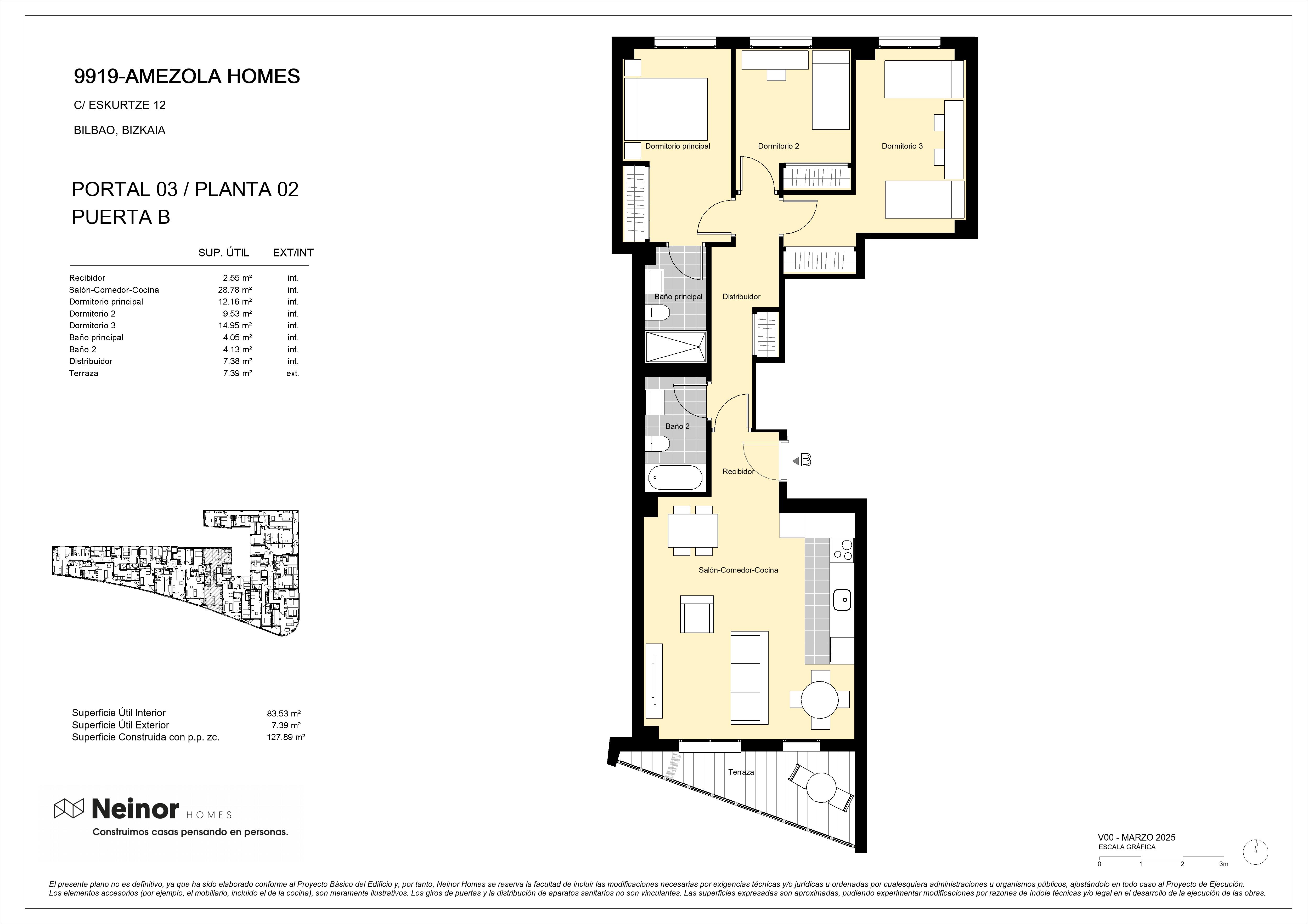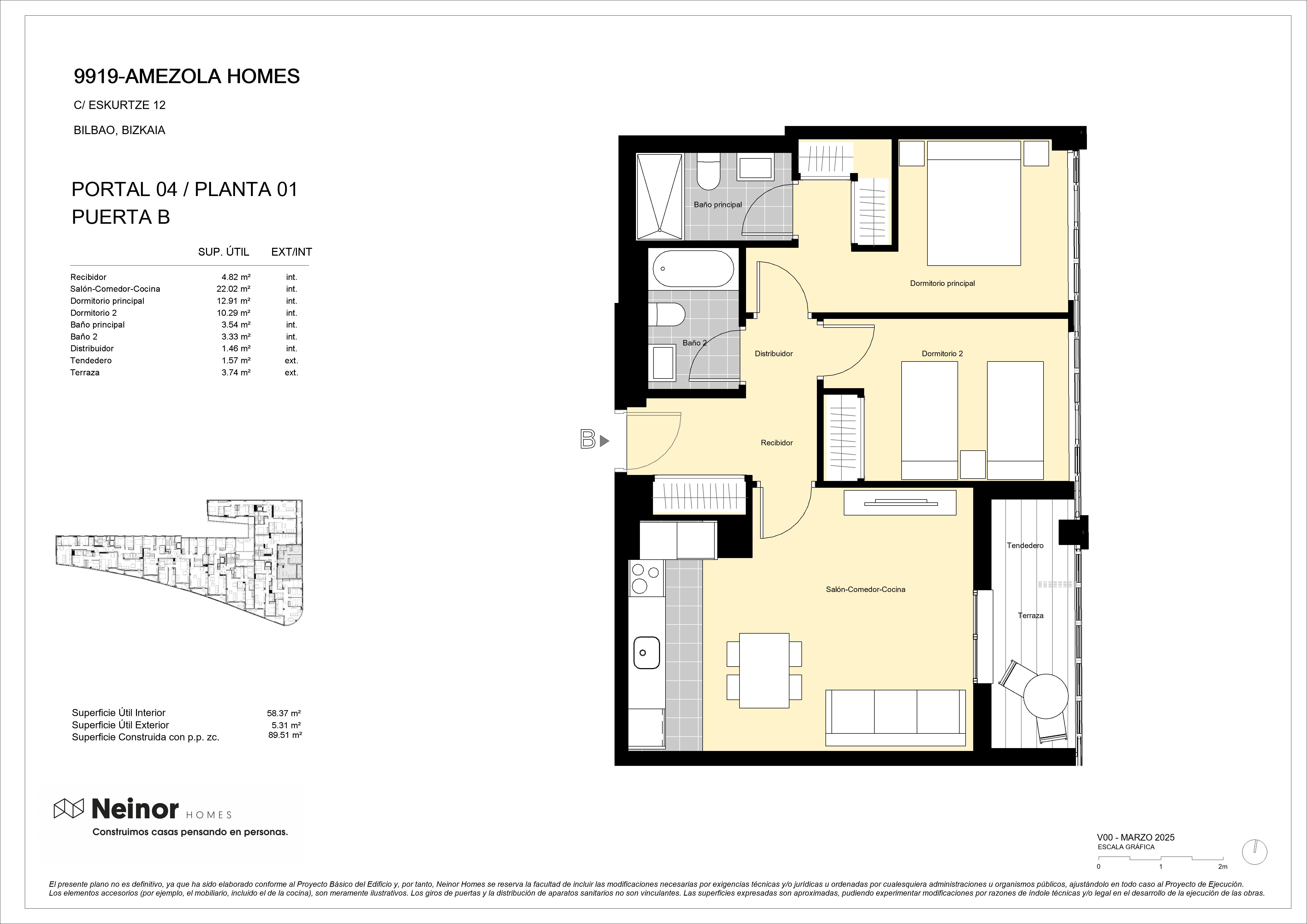 La privilegiada situación de AMEZOLA HOMES, muy próxima al Parque Amezola y frente al Instituto de Eskurtze, cuenta con un claro despeje en un área ya consolidada por edificios residenciales, que hace el entorno más amable.