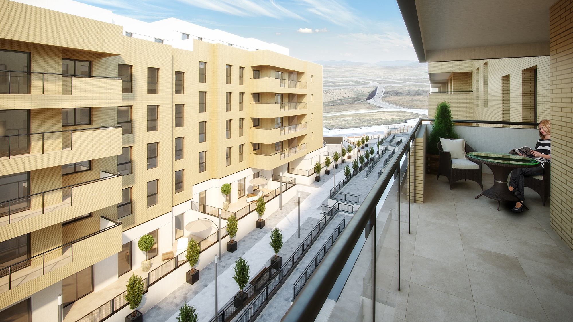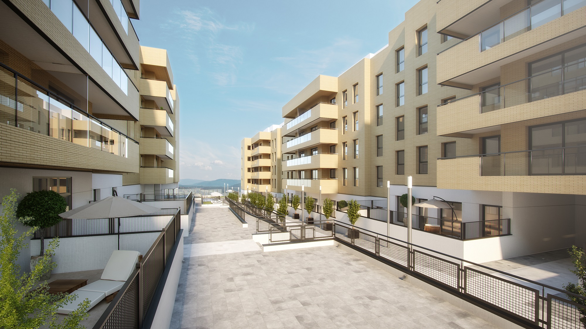 La promoción de nueva construcción ofrece viviendas protegidas de 2, 3 y 4 dormitorios con terraza, garaje y trastero en una urbanización privada. El conjunto se completa con piscina, amplios espacios comunes y área de juegos infantiles.
