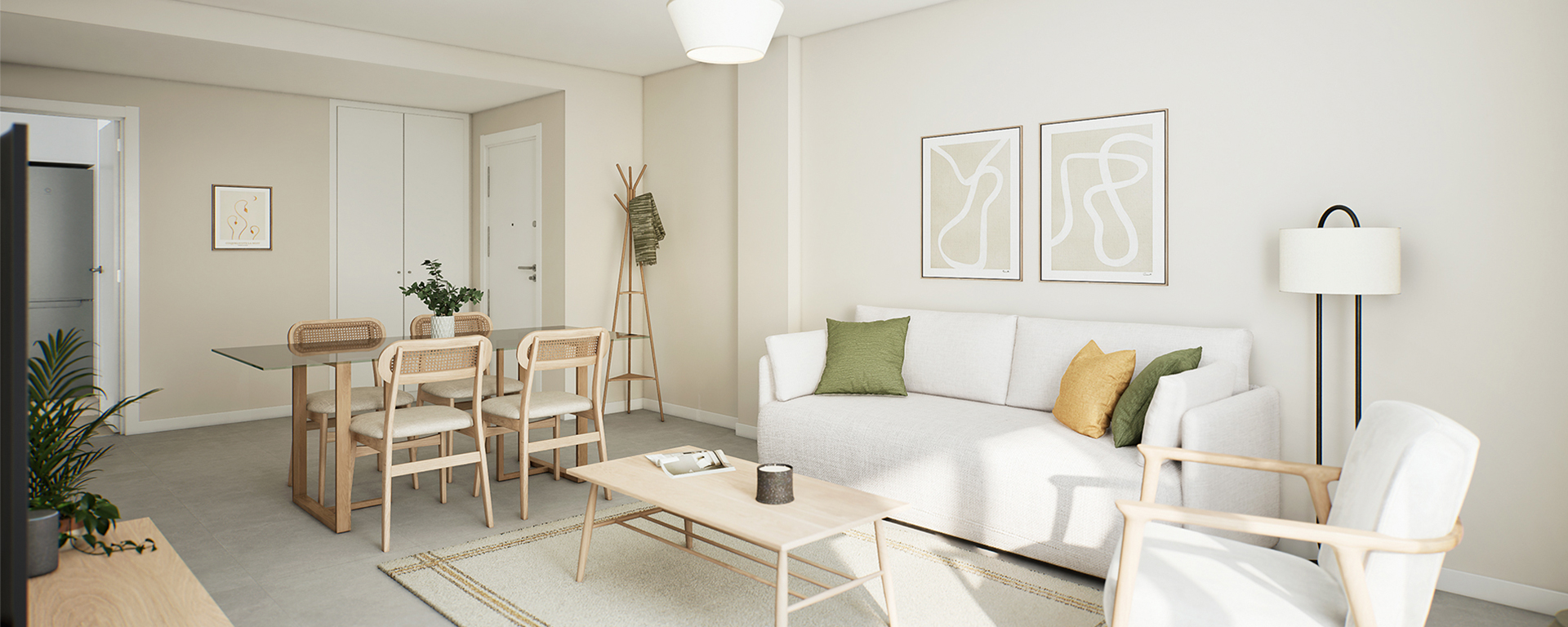 Las viviendas están dotadas de una distribución optima con un cuidado diseño de cada espacio que a su vez aporta gran luminosidad lo que da como resultado un hogar cálido.