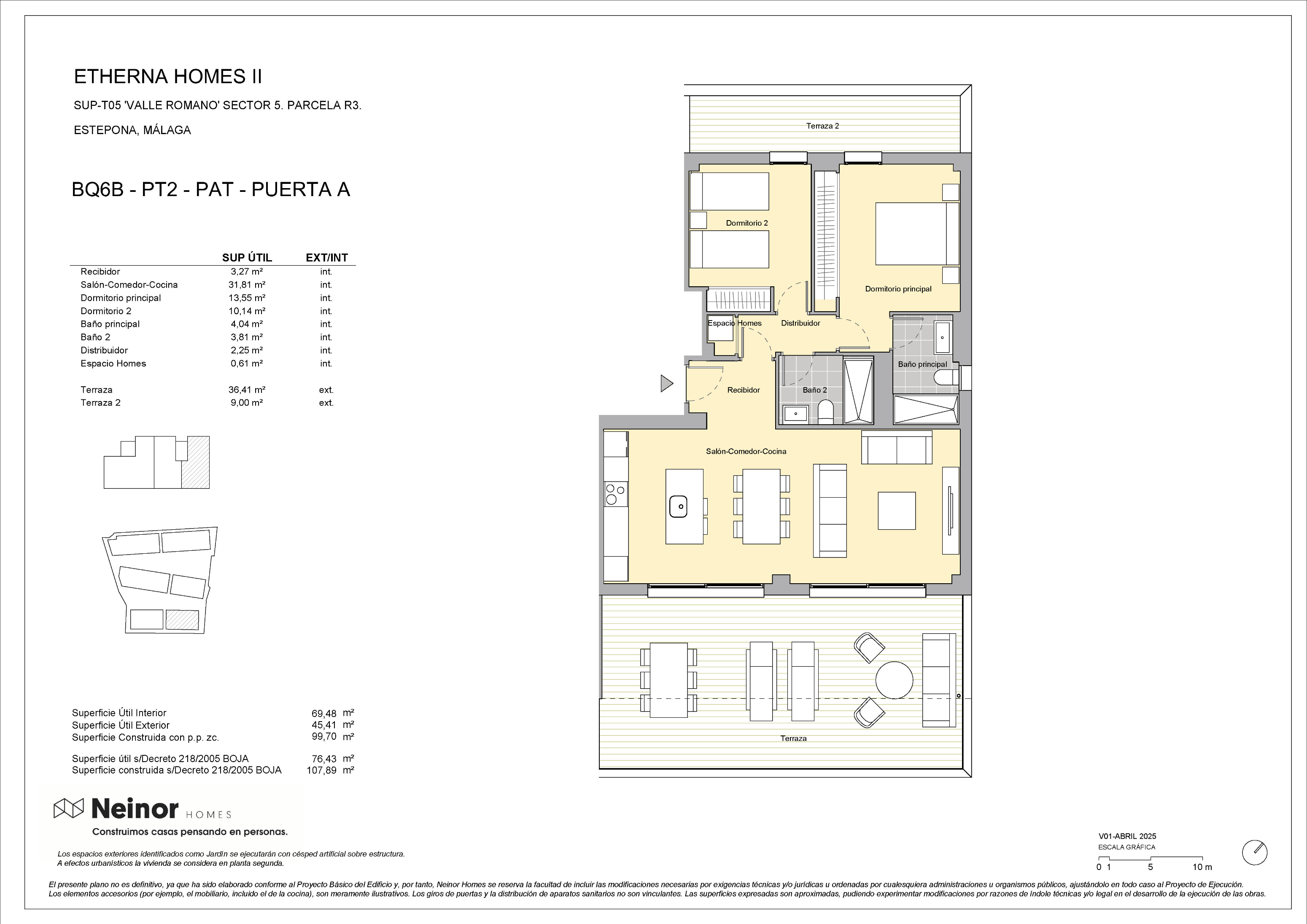 Etherna Homes II es un exclusivo conjunto residencial compuesto por 144 viviendas de 1, 2 y 3 dormitorios, distribuidas en seis edificios de baja altura. Su diseño vanguardista y moderno se integra perfectamente con el entorno natural, ofreciendo a sus residentes unas vistas espectaculares a la Bahía de Estepona y al campo de golf de Valle Romano.