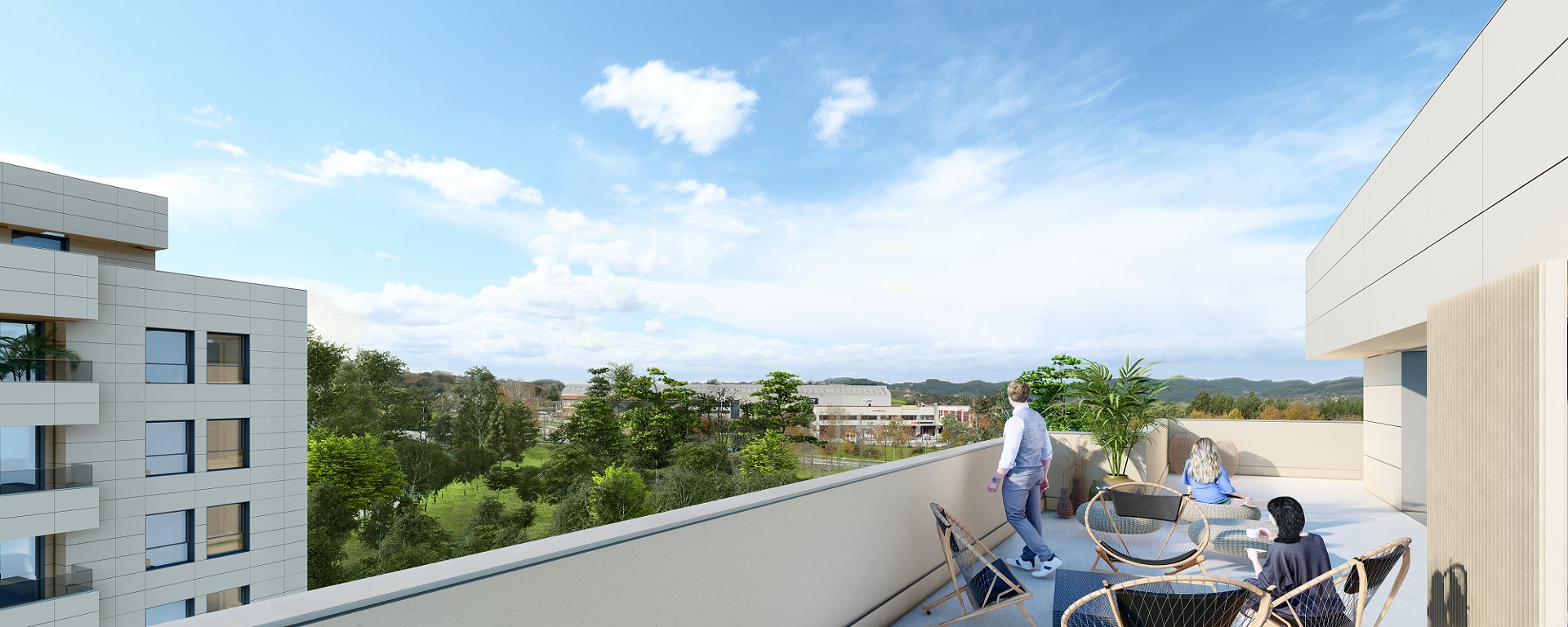 Este conjunto residencial encarna un estilo de vida moderno y eficiente, basado en una oferta de viviendas sostenibles con servicios comunes que enriquecen la experiencia de los residentes. Las elegantes fachadas de los dos edificios que conforman este proyecto atemporal reflejan nuestro compromiso con la eficiencia y la sostenibilidad, sin descuidar los elementos de las zonas compartidas.