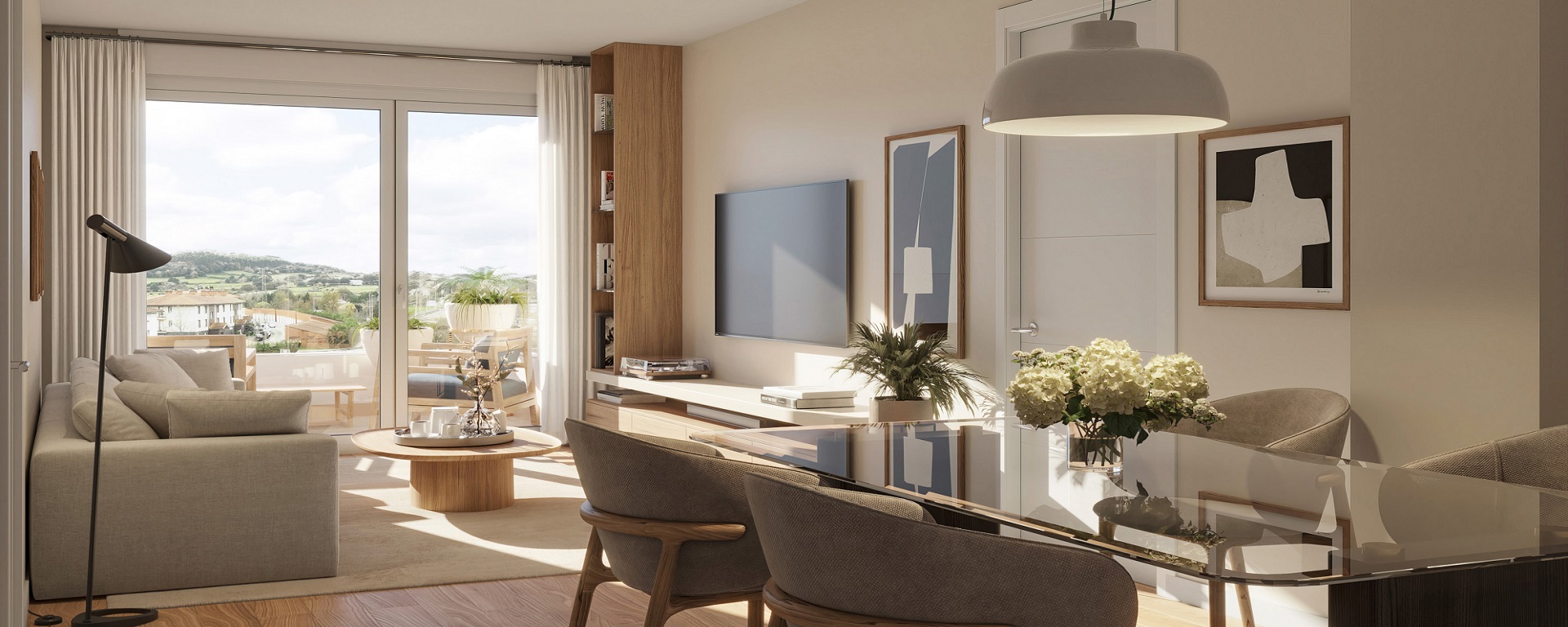 Mungia Homes, viviendas de 1, 2 y 3 dormitorios para satisfacer las demandas de todos nuestros residentes. Cada vivienda ha sido meticulosamente diseñada para optimizar distribuciones, luz y orientación, resultando en hogares eficientes, modernos y funcionales. Destacamos especialmente las amplias terrazas disponibles en cada vivienda, ideales para disfrutar al aire libre durante momentos de ocio.