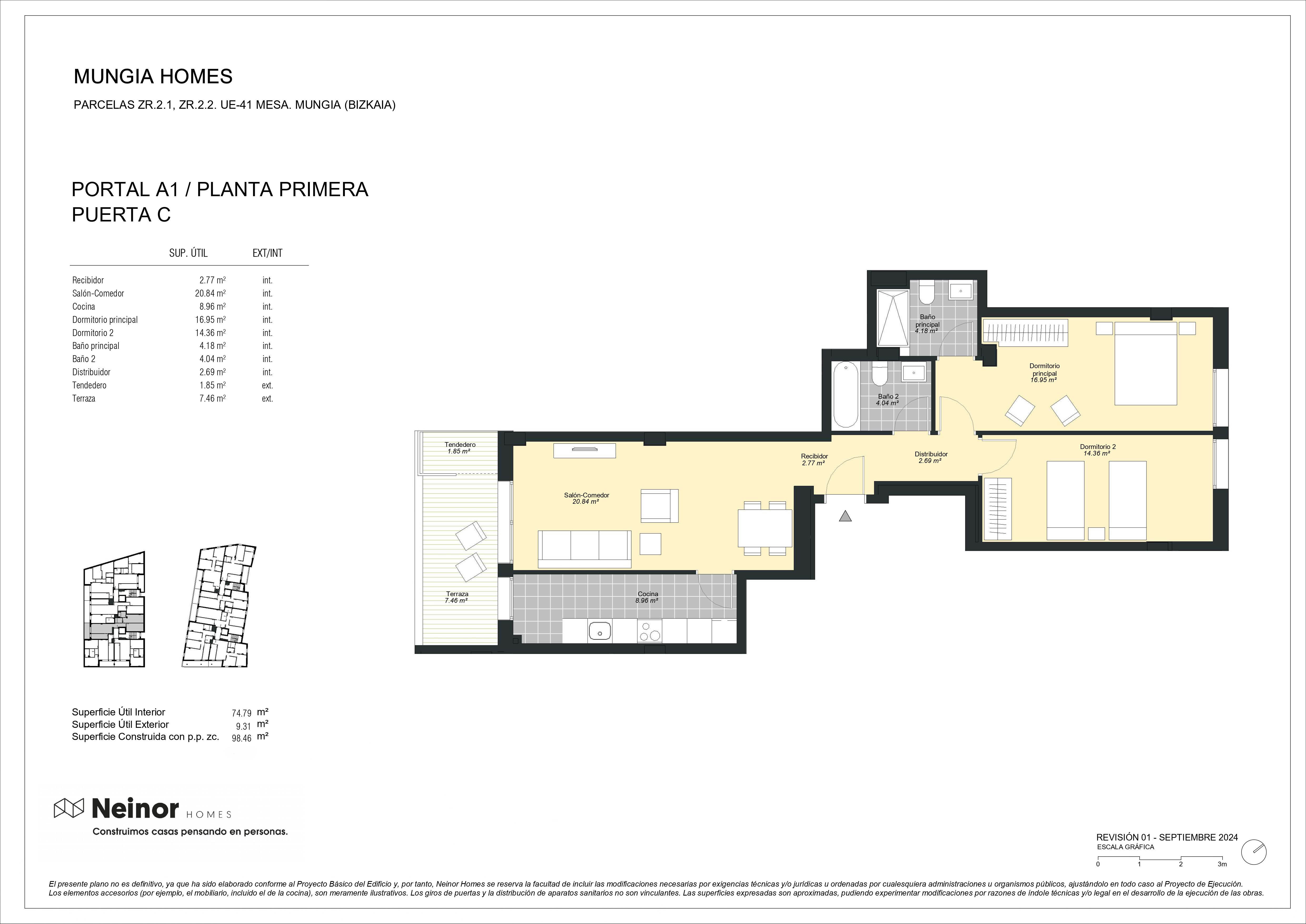Compuesto por dos edificios, la promoción cuenta con 76 viviendas de 2 y 3 dormitorios, todas ellas con amplias terrazas y doble orientación lo que amplifican la luminosidad.