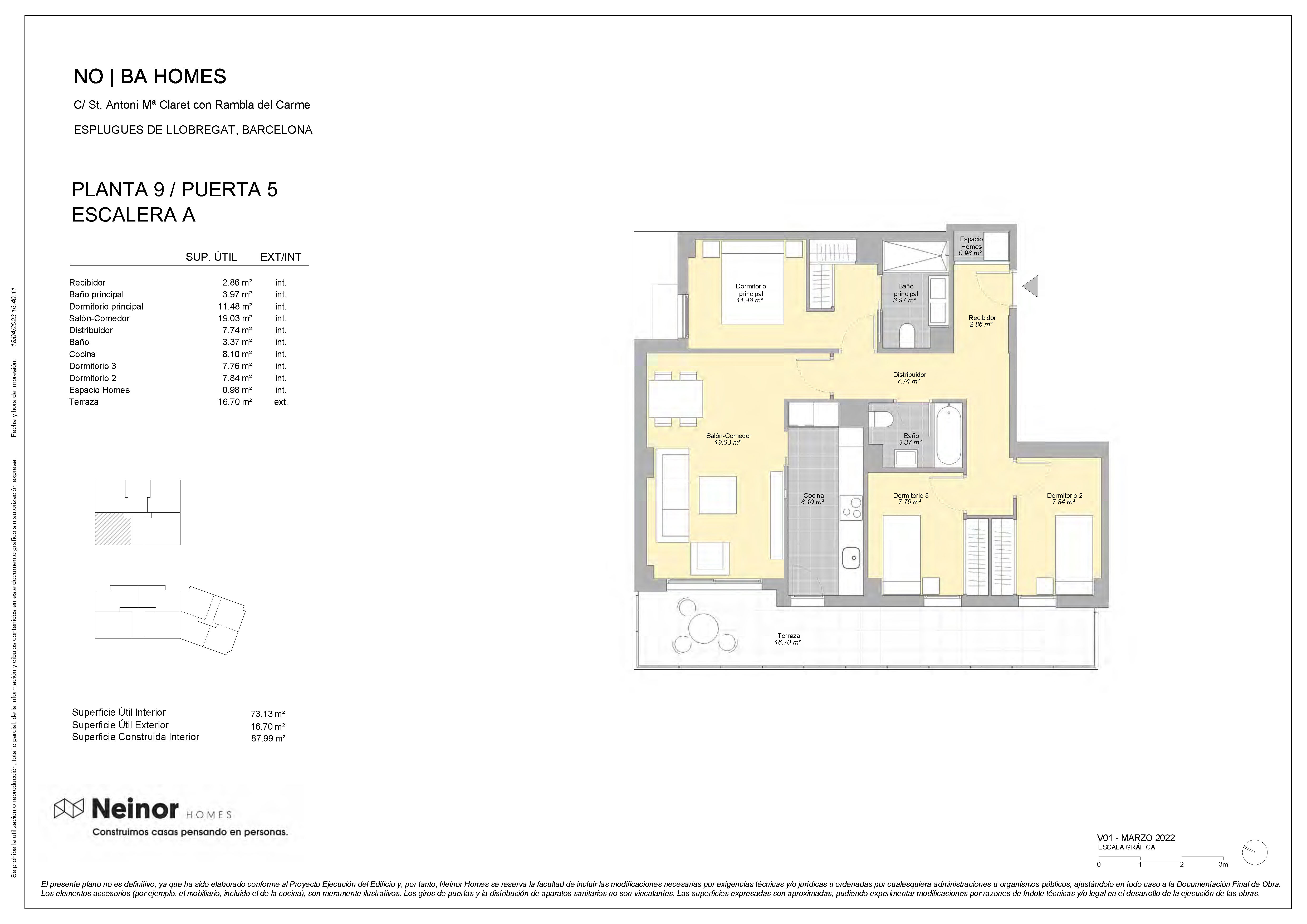 NO|BA Homes, conjunto residencial de 67 viviendas de obra nueva de 2 y 3 dormitorios en Esplugues de Llobregat. Todas las viviendas y áticos disponen de amplias terrazas que conectan con el exterior.