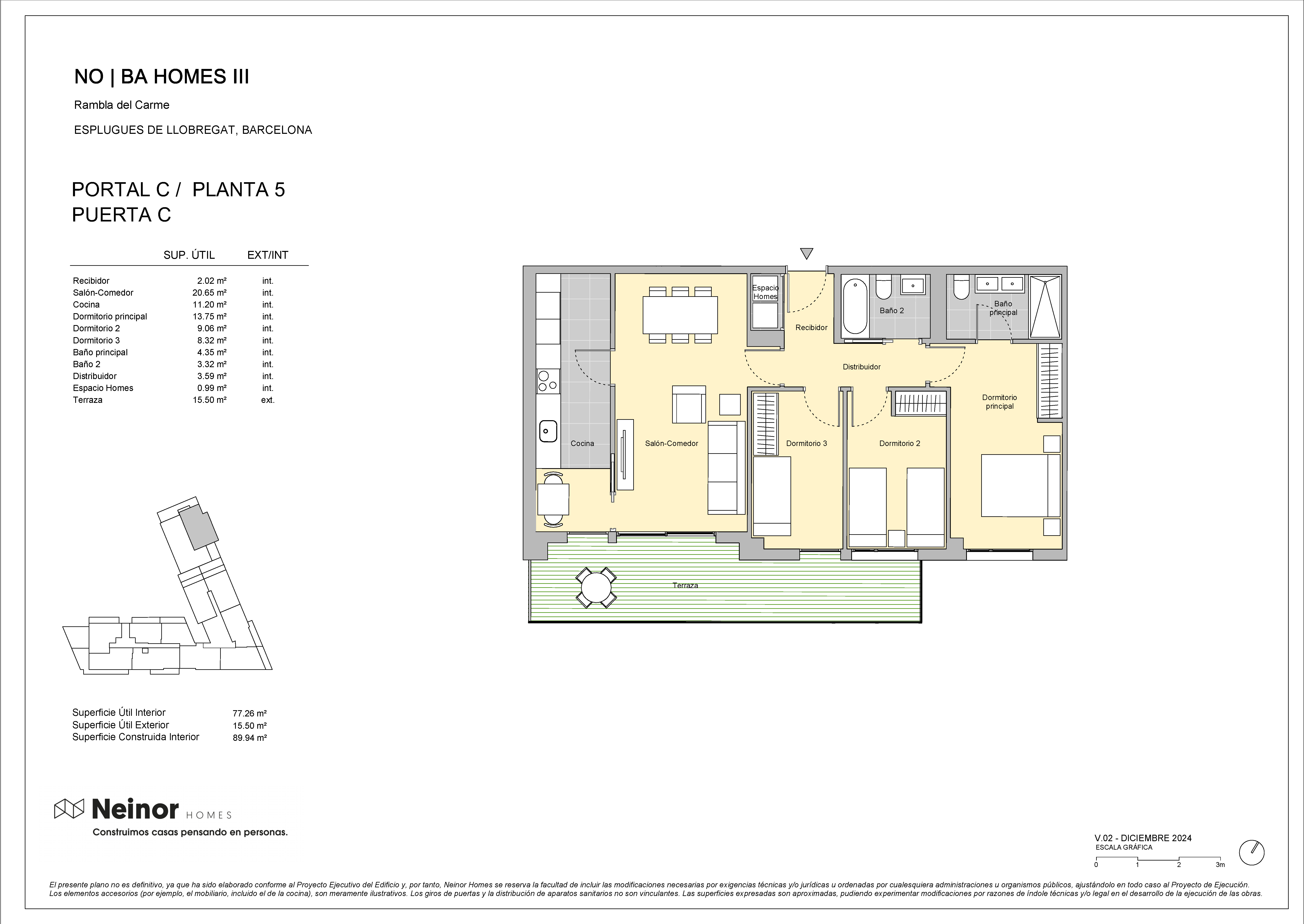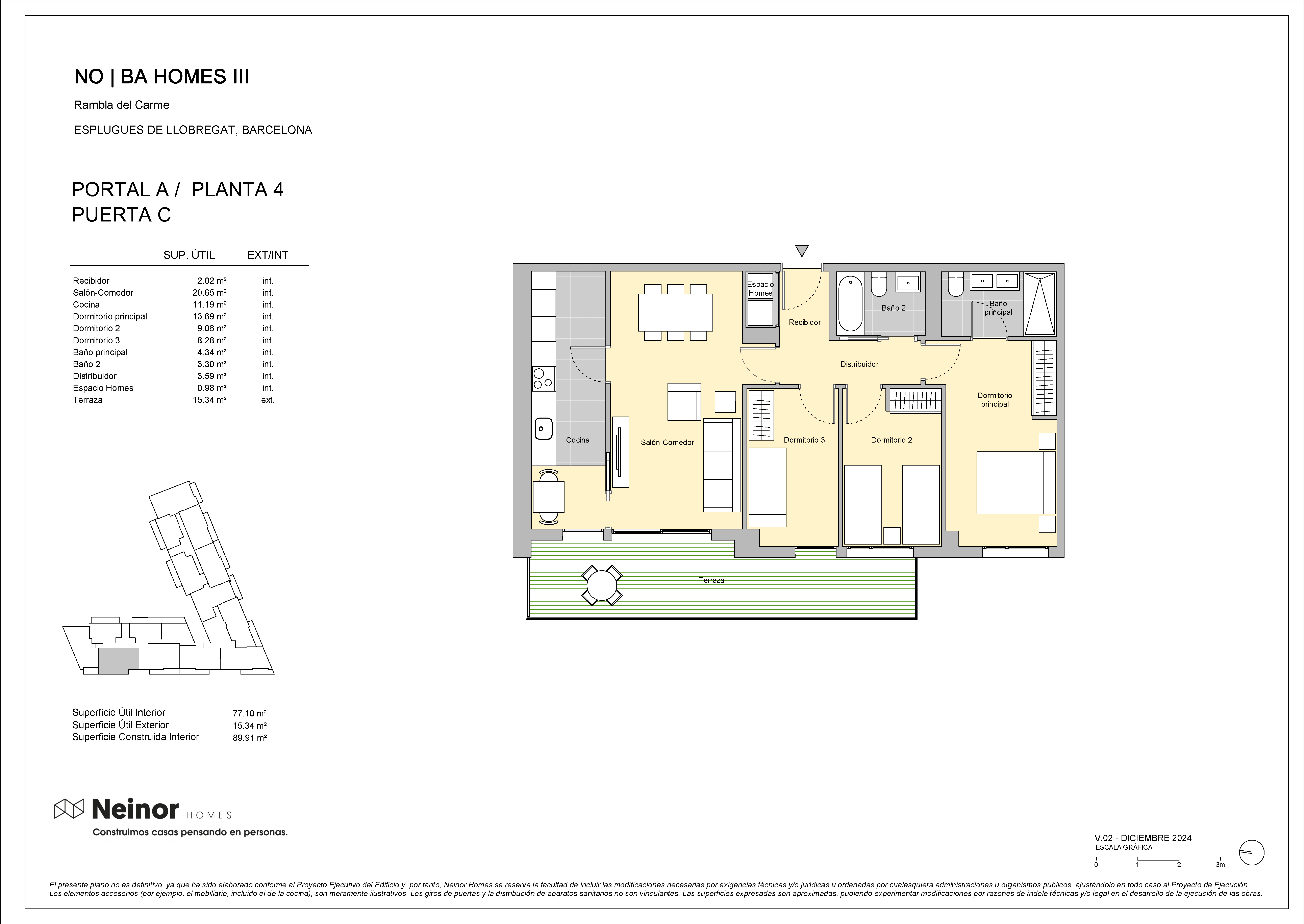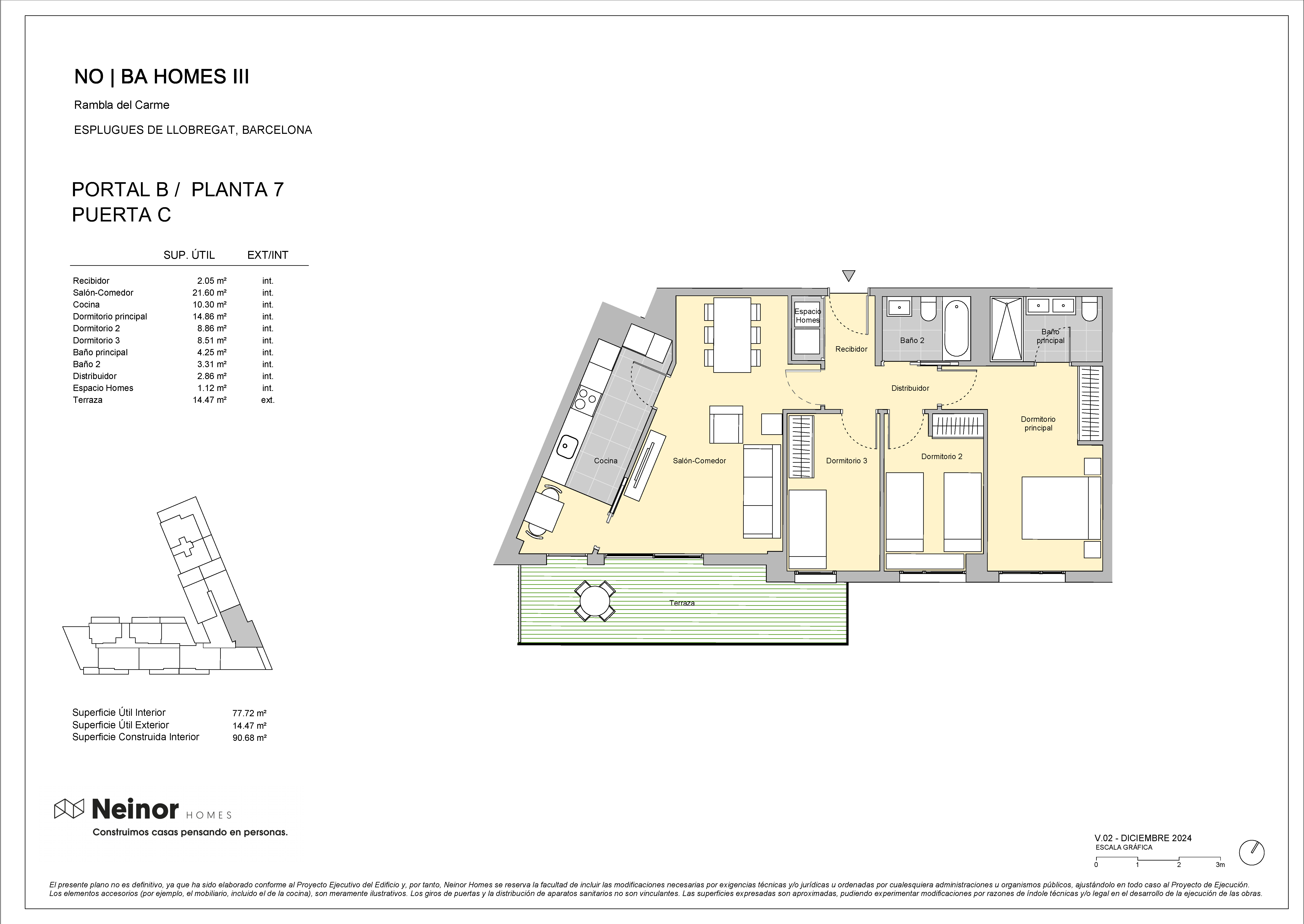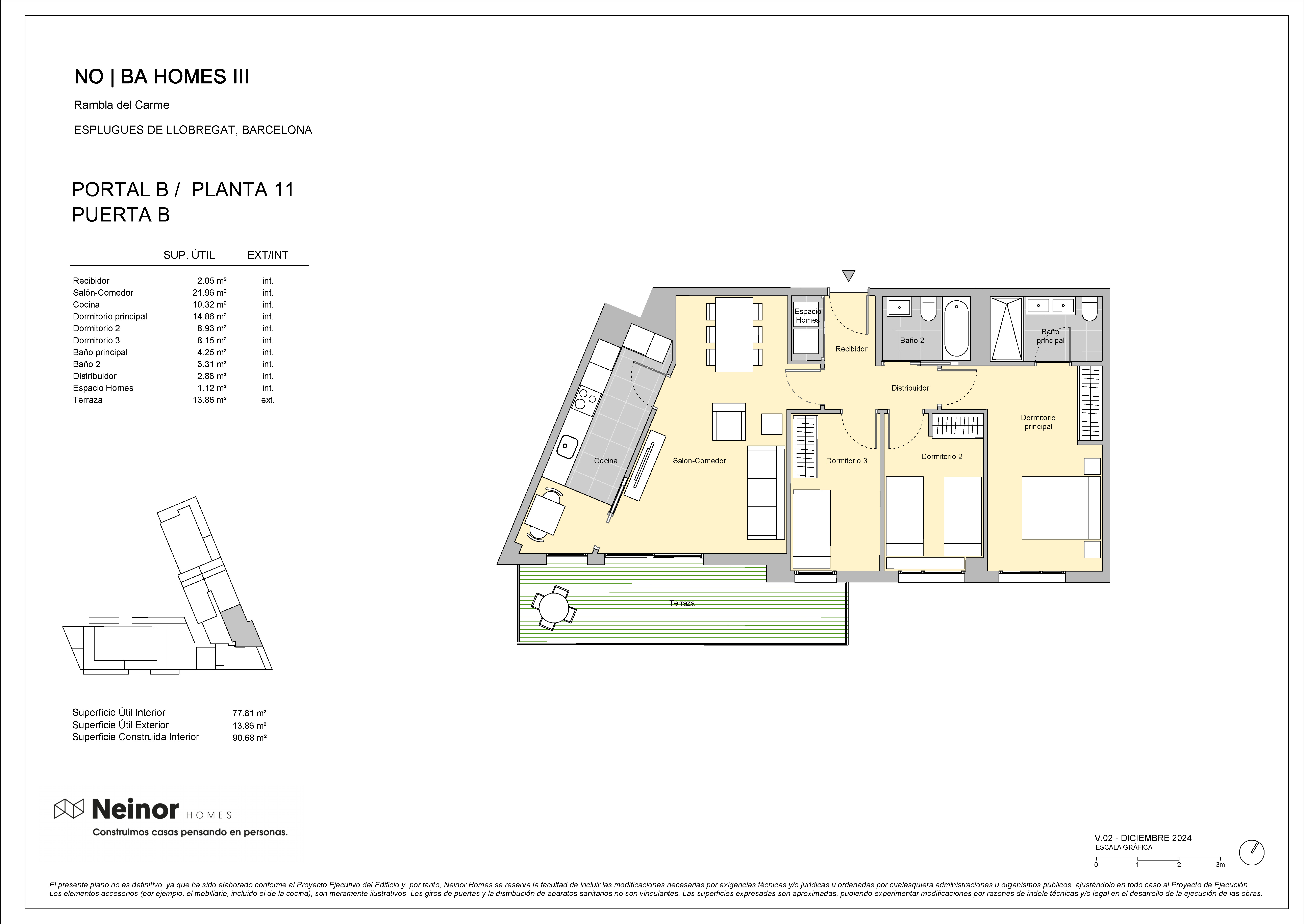 NO|BA Homes III es un conjunto residencial dispuesta de planta baja más 7 alturas, planta baja más 9 alturas y planta baja más 11 alturas, compuesta por 126 viviendas de 2,3 y 4 dormitorios distribuidas entre 3 escaleras.