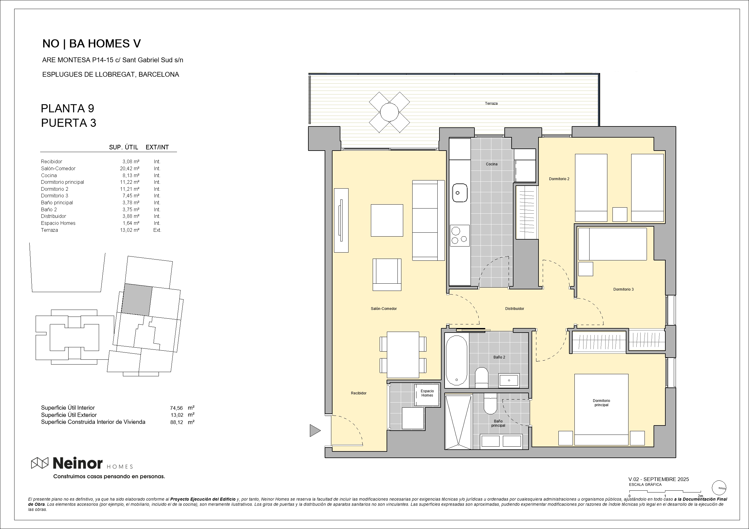 NO | BA Homes V es un conjunto residencial compuesto por 90 viviendas, 2 locales comerciales, 98 garajes para vehículos, 83 trasteros y 45 plazas de garaje para motocicletas.