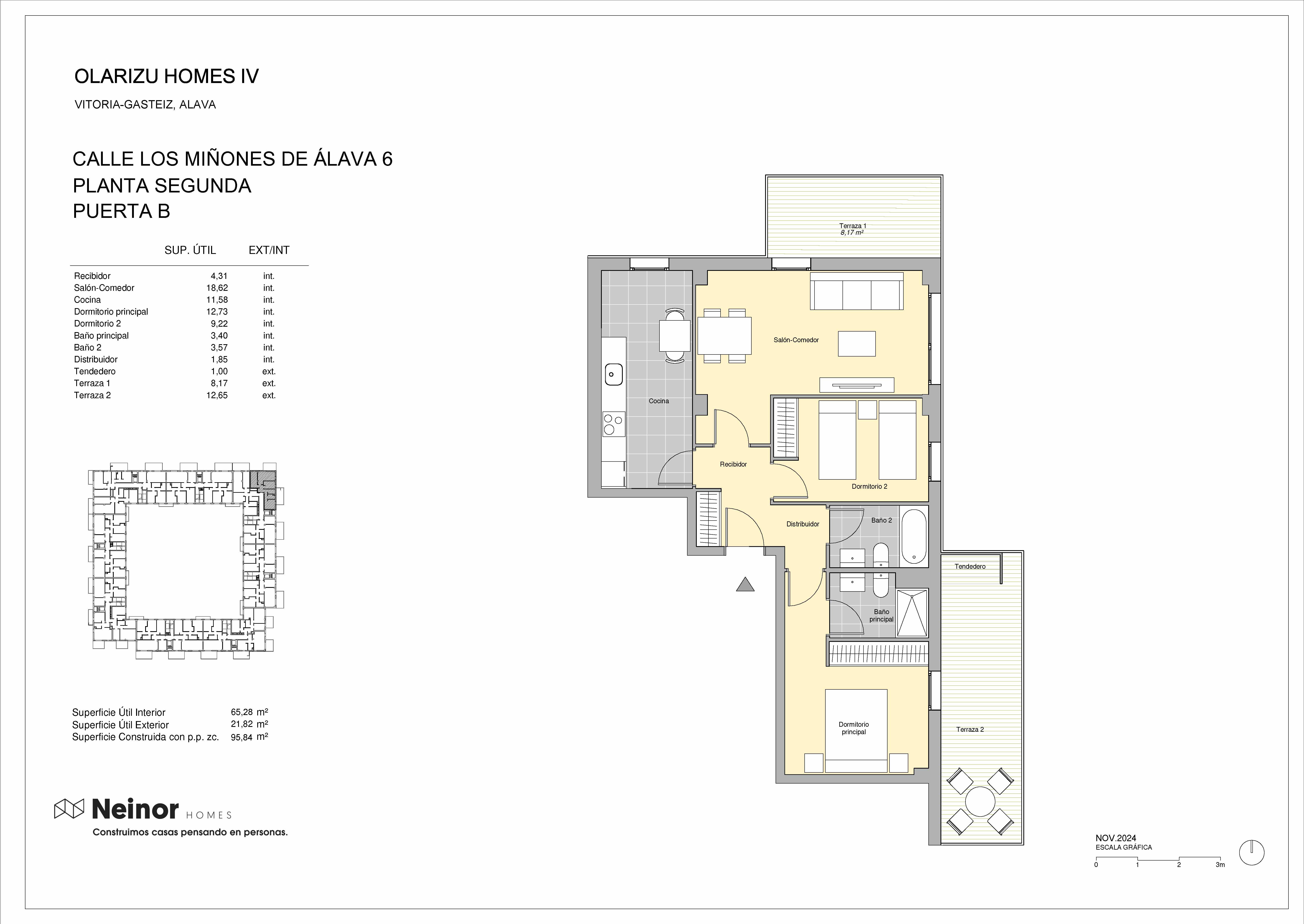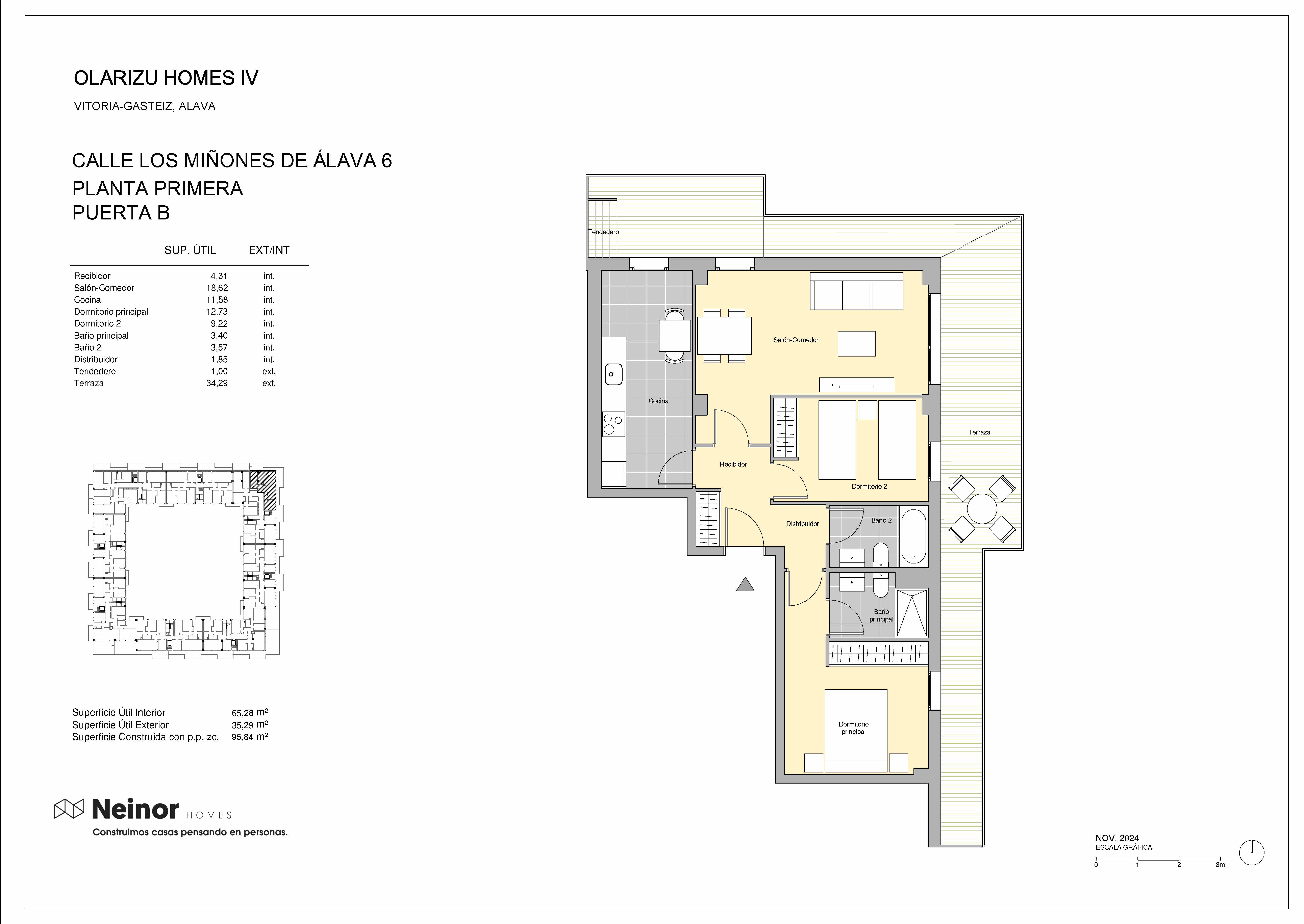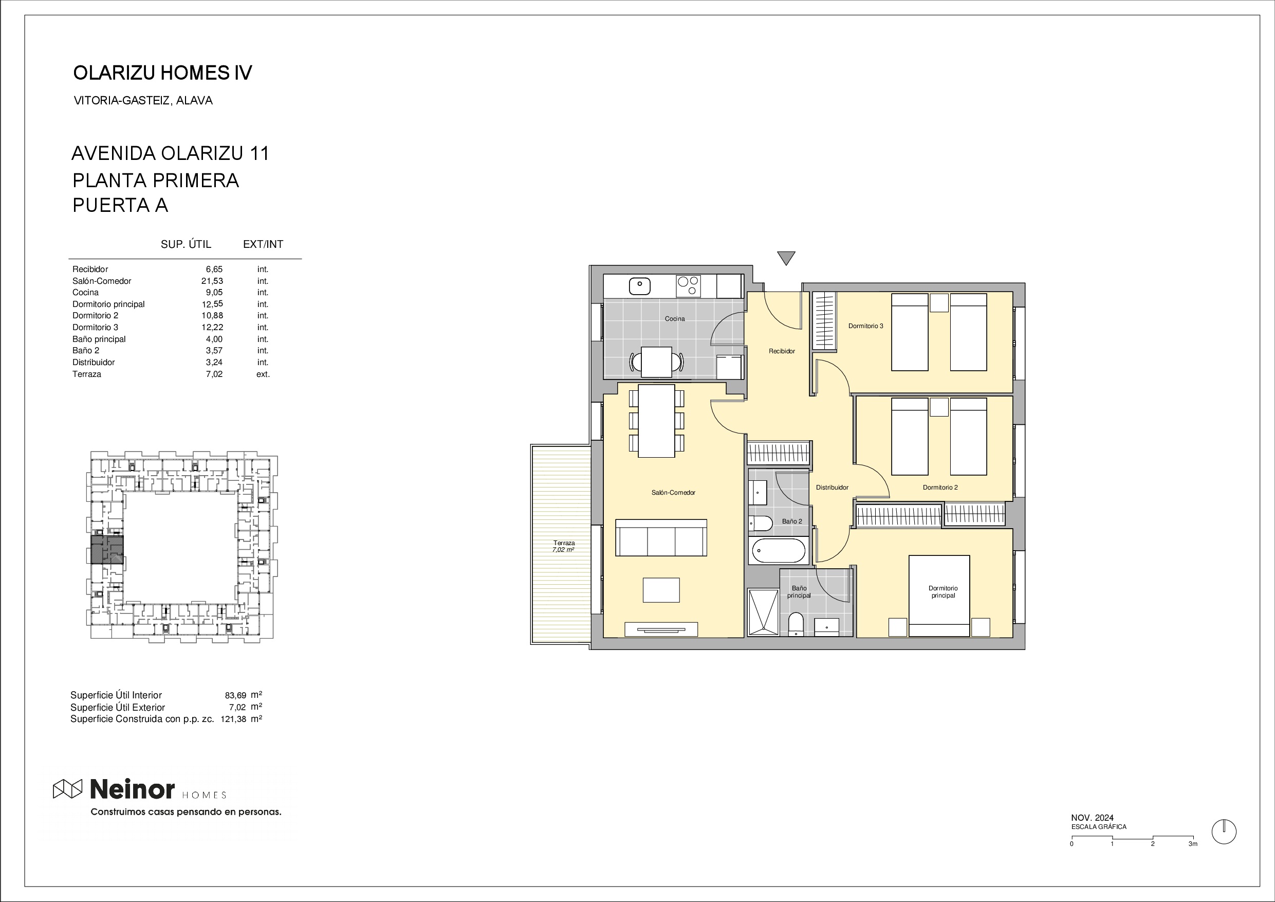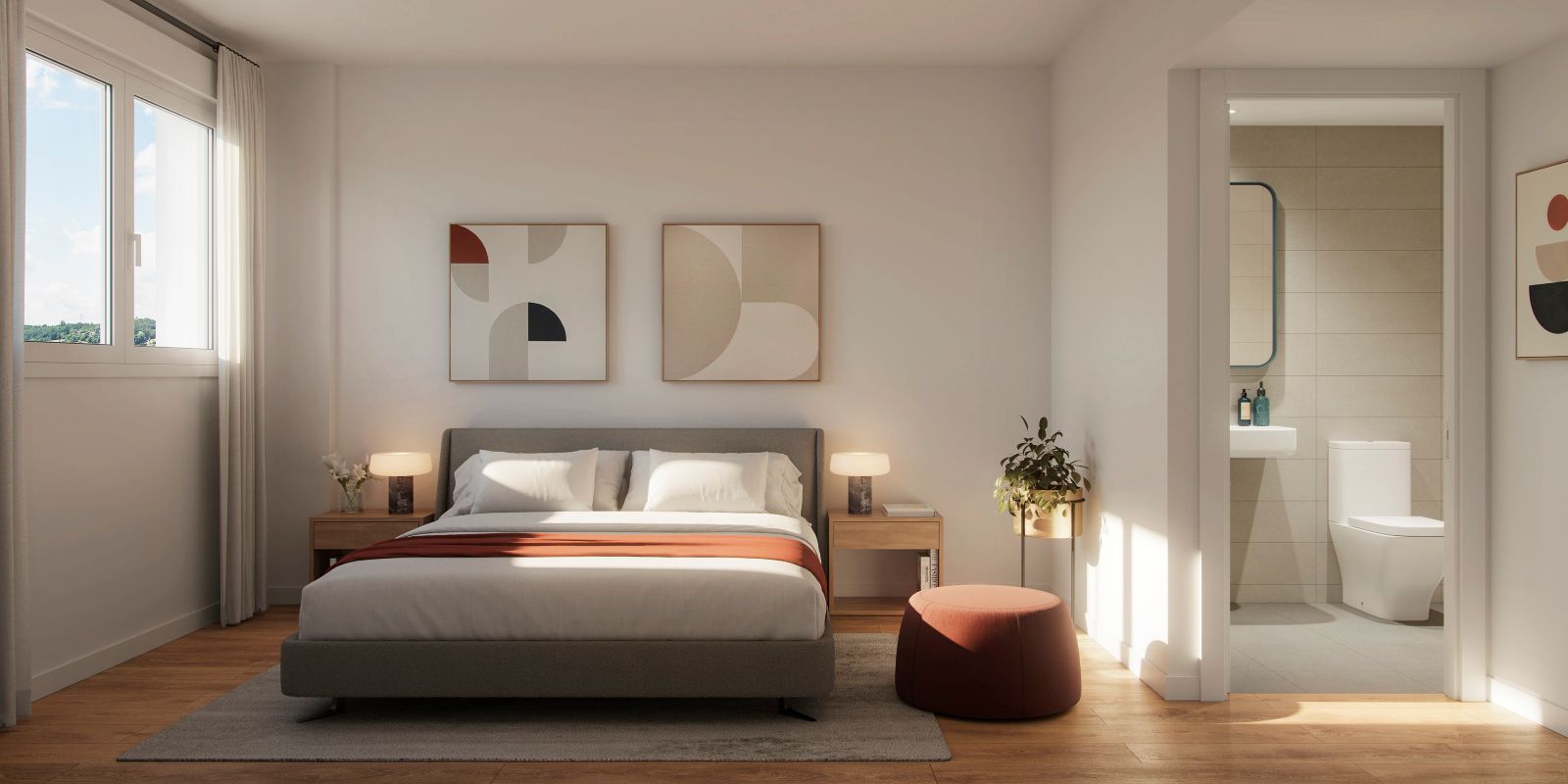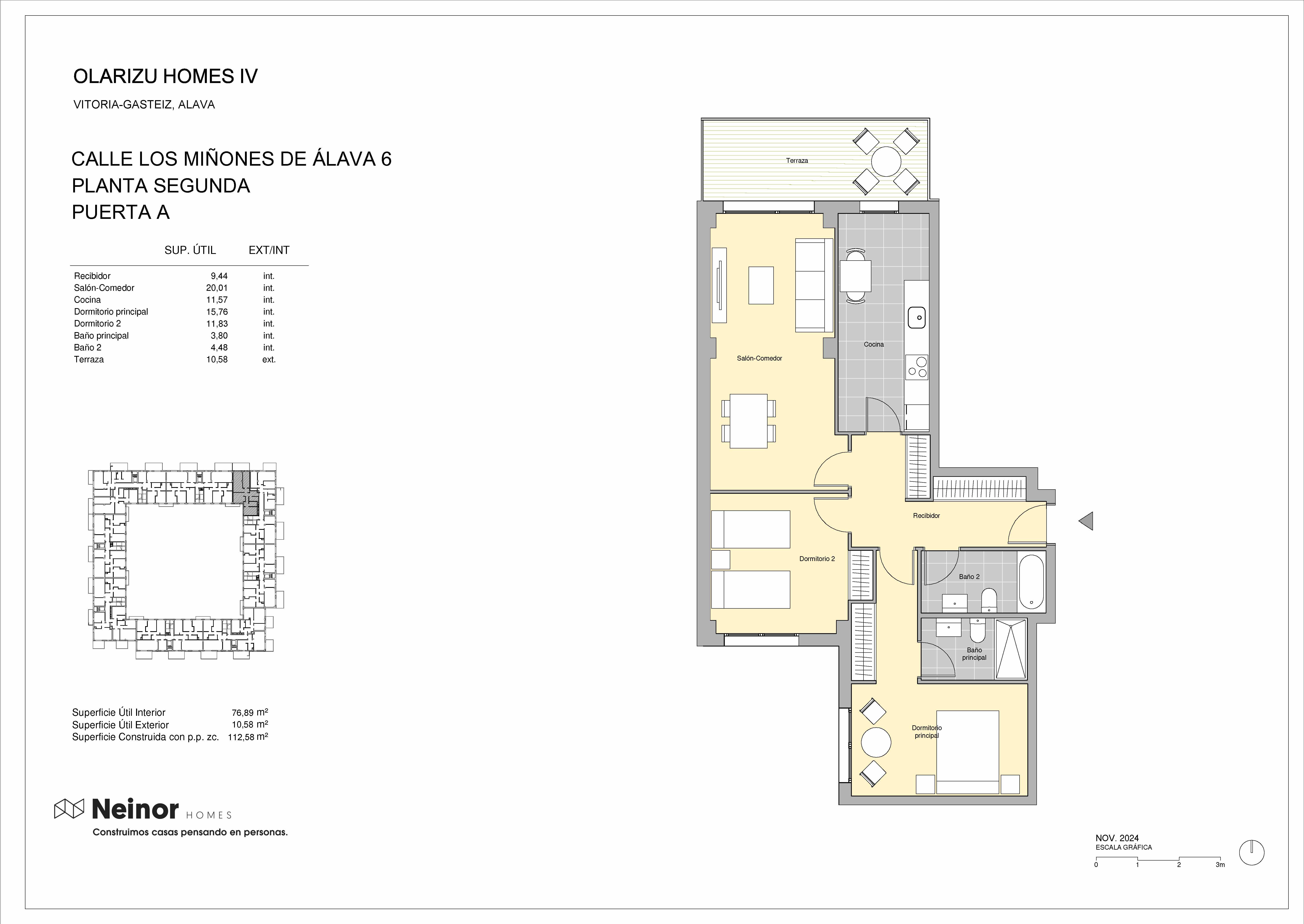 Olarizu Homes IV cuenta con 120 viviendas de 1, 2 y 3 dormitorios con distribuciones prácticas y funcionales en un entorno natural privilegiado de amplias avenidas y calles arboladas que invitan a pasear y disfrutar del aire fresco.