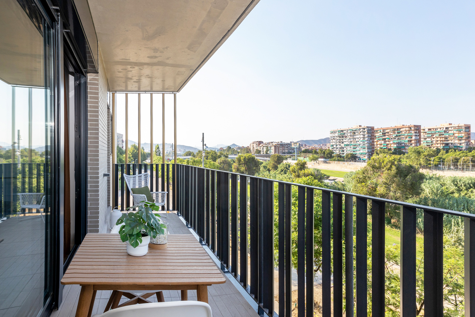 La promoción presenta viviendas atractivas y funcionales que han sido diseñadas con distribuciones abiertas al exterior mediante amplios balcones y siguiendo criterios de máximo aprovechamiento del espacio y de la luz solar. Dentro del conjunto cabe destacar los áticos de 3 y 4 dormitorios con amplias terrazas, pensadas para disfrutar de la vida al aire libre y las magníficas vistas al río y al mar.