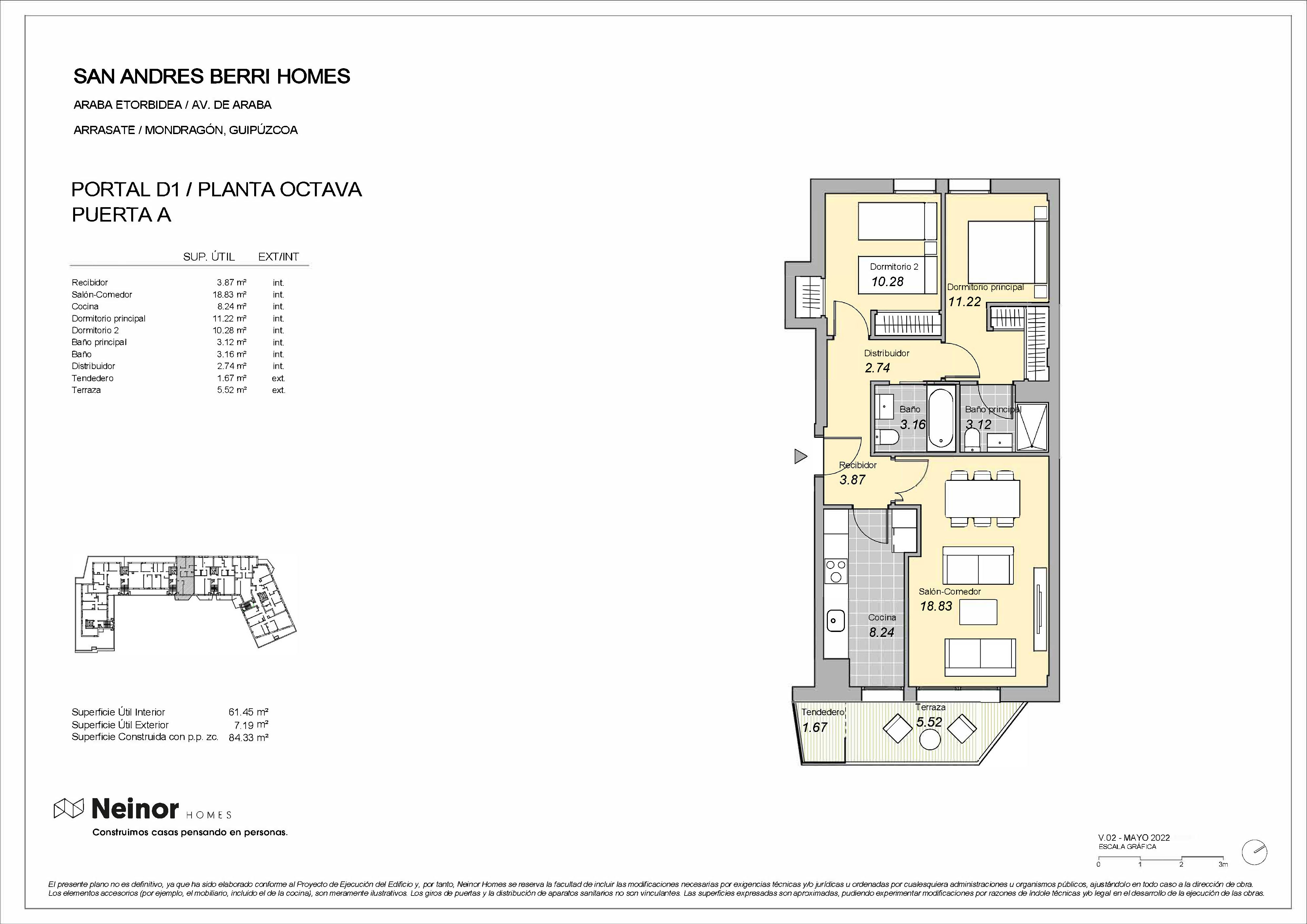 Vivir en San Andrés Homes significa disfrutar de la tranquilidad de un barrio pintoresco en Arrasate-Mondragón, integrado en la naturaleza junto al río Deba. Tienes acceso directo a la AP8 y la N636, lo que te sitúa estratégicamente a solo 25 minutos de Vitoria-Gasteiz, 45 de Bilbao y 55 de Donostia-San Sebastián.