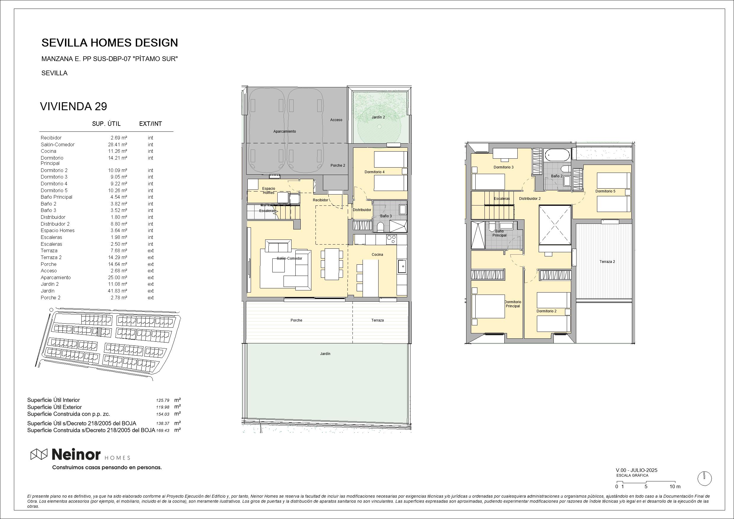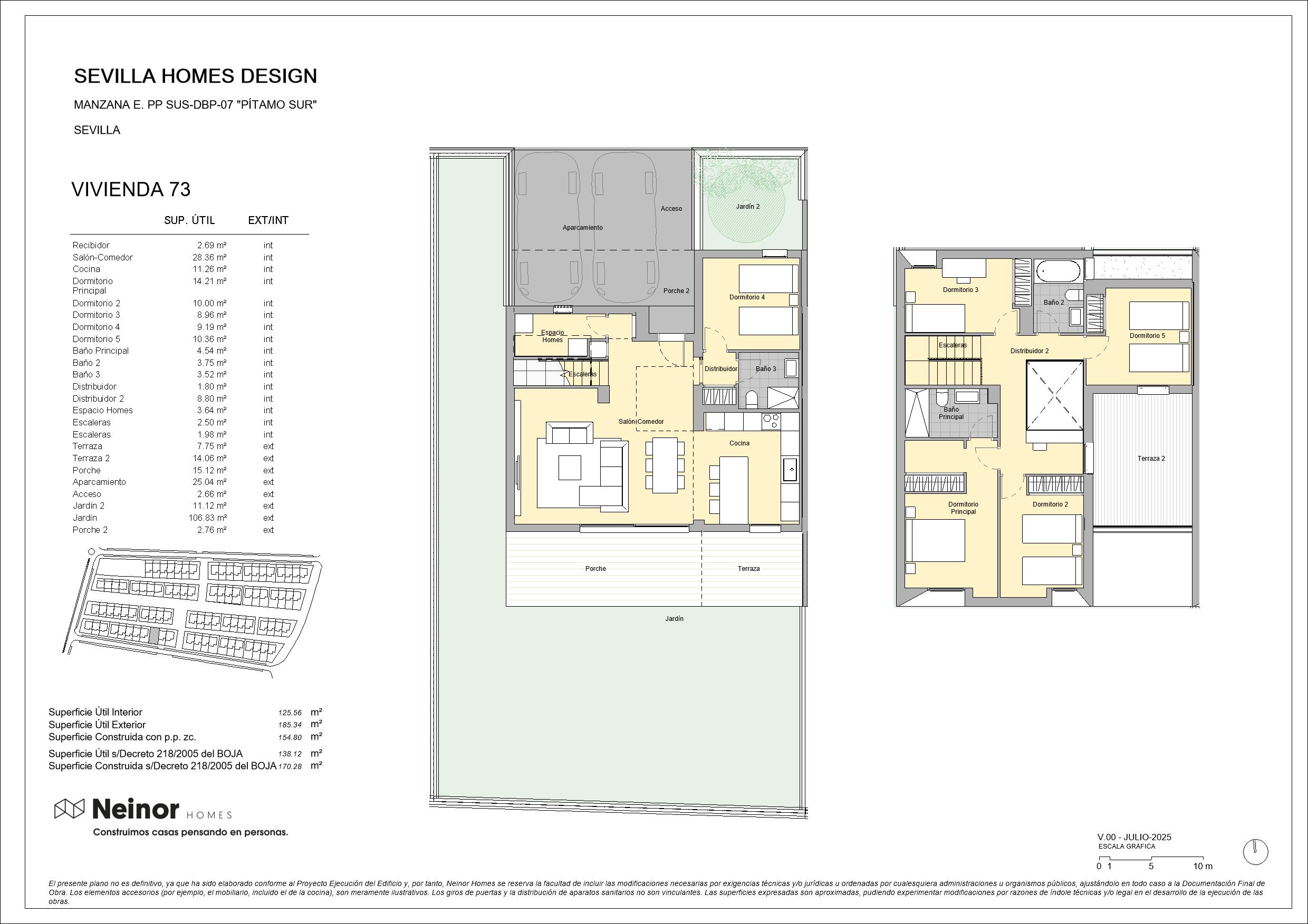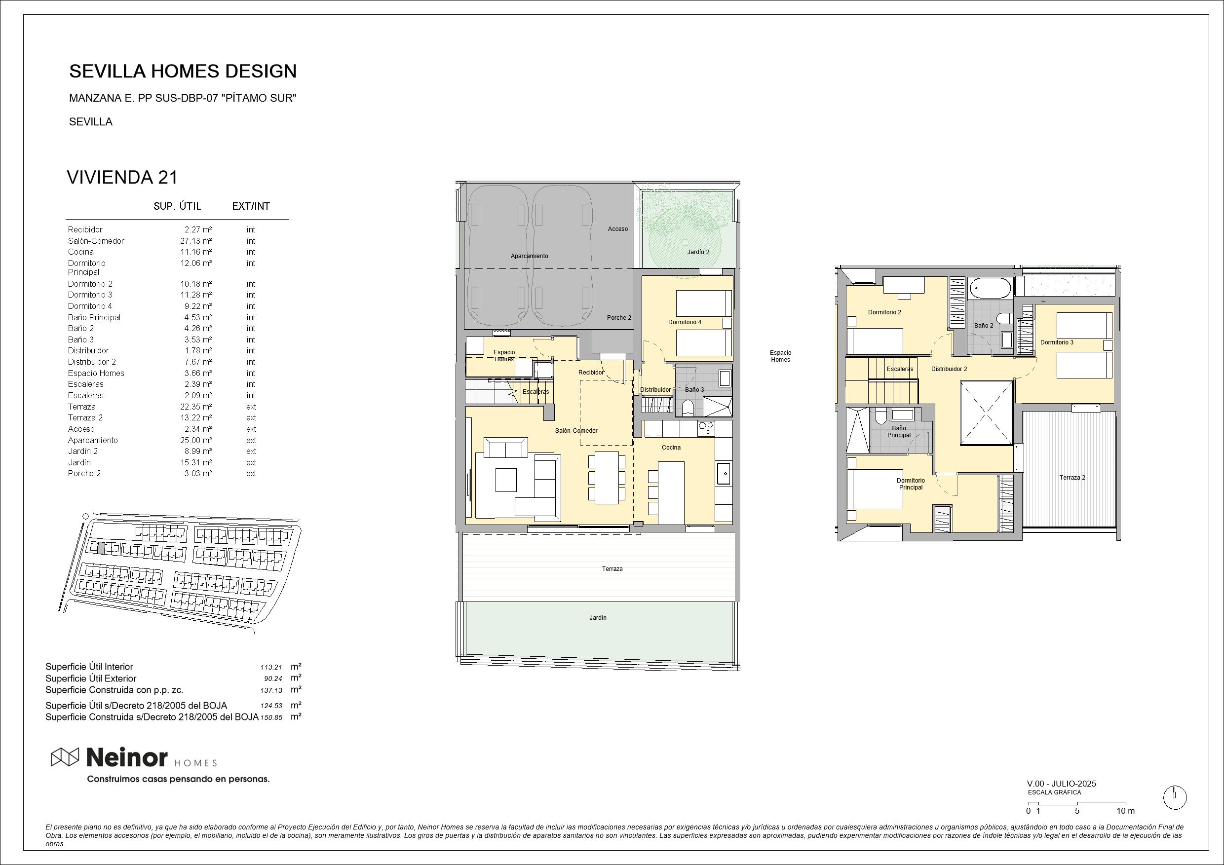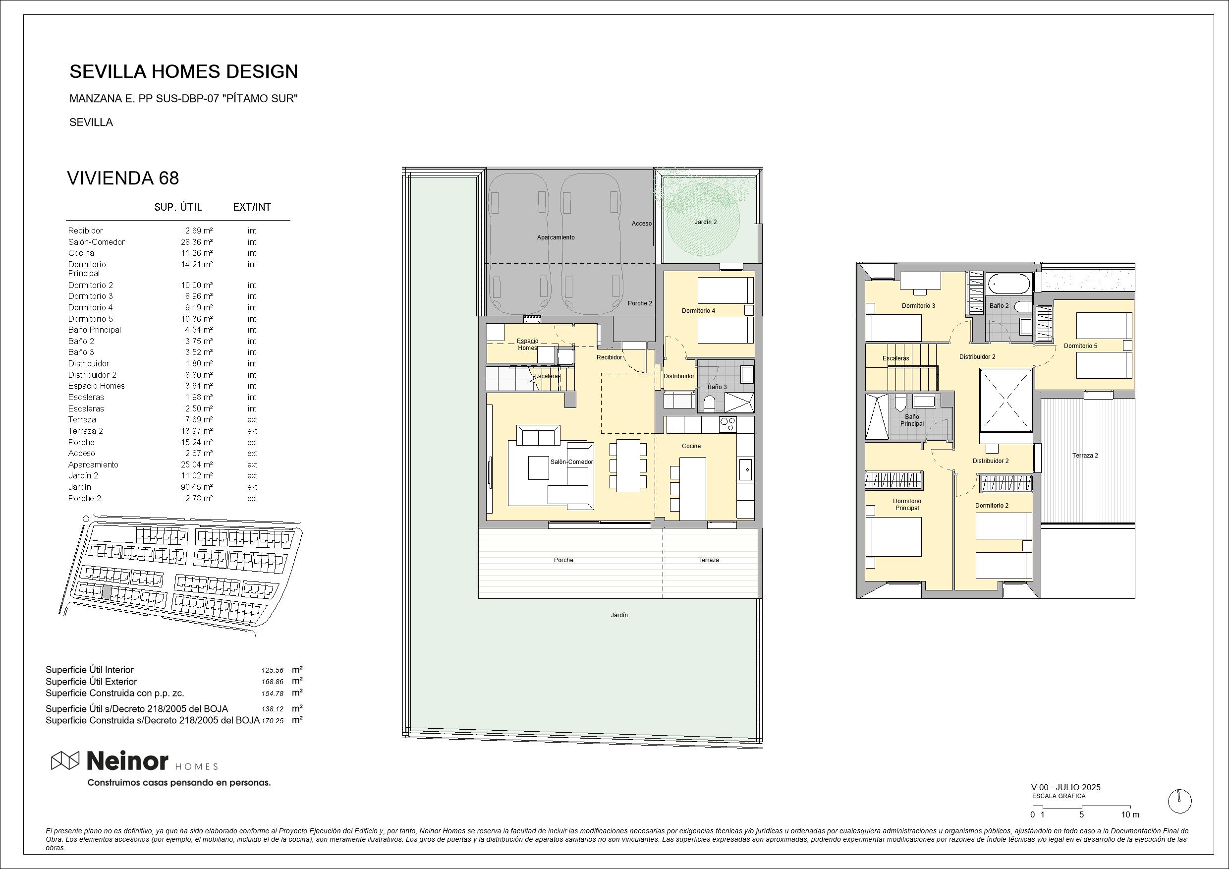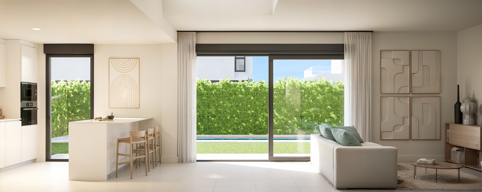 Sevilla Homes Design es un conjunto residencial de 83 viviendas unifamiliares adosadas y pareadas en esquinas, de 4 y 5 dormitorios. Las viviendas destacan por su diseño moderno y actual con una cómoda distribución en dos plantas de altura con espaciosas estancias, además de contar con jardín privado y terraza en la planta superior. Las zonas comunes disponen de circuito de running y paseo, así como de una zona arbolada y un área infantil que, junto con los amplios jardines privados, permiten disfrutar de un entorno natural donde disfrutar de la máxima tranquilidad de inigualables momentos de relax.