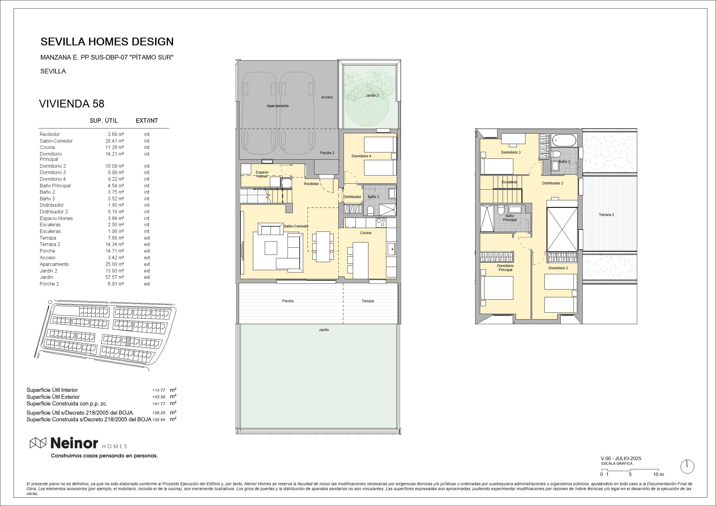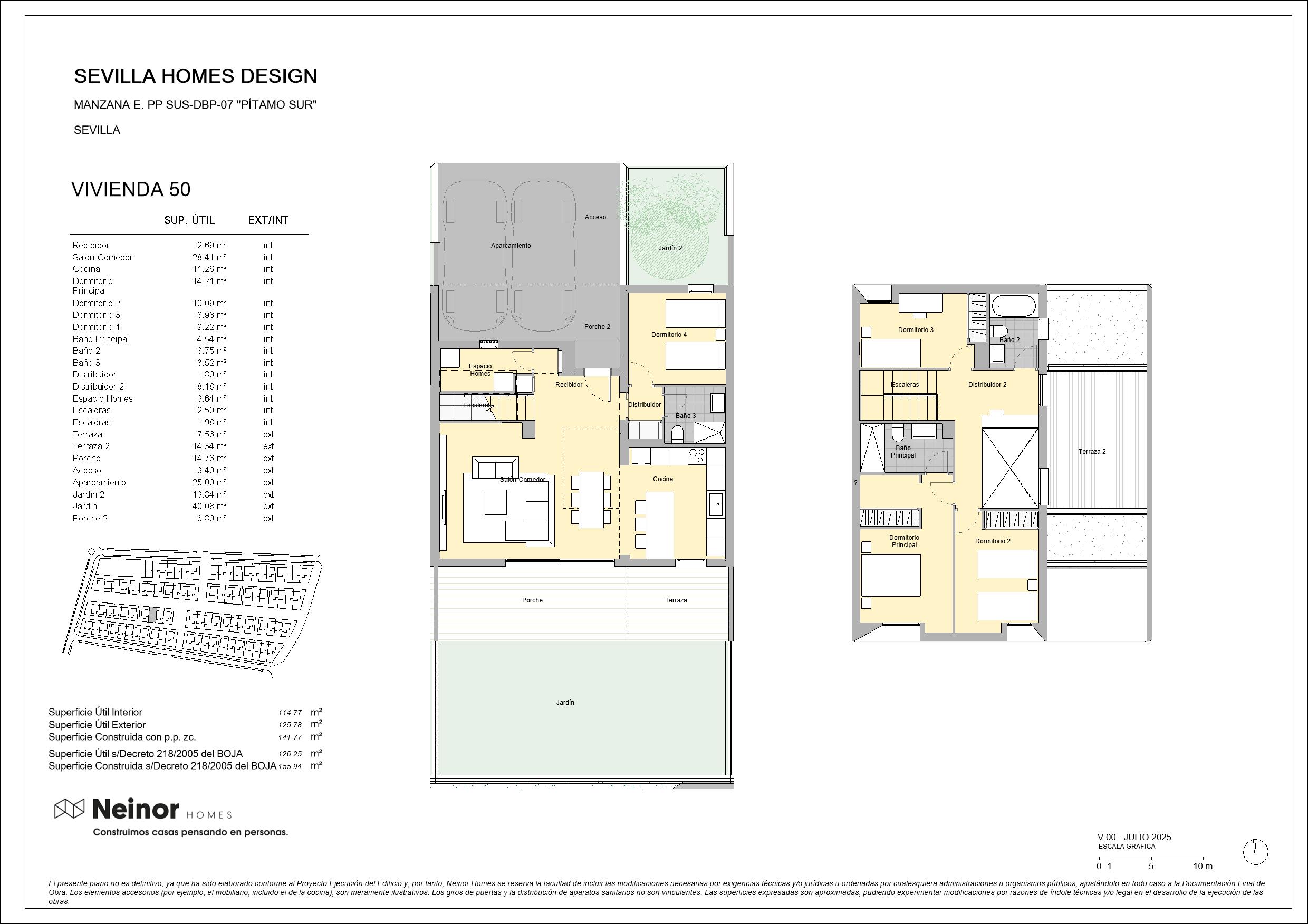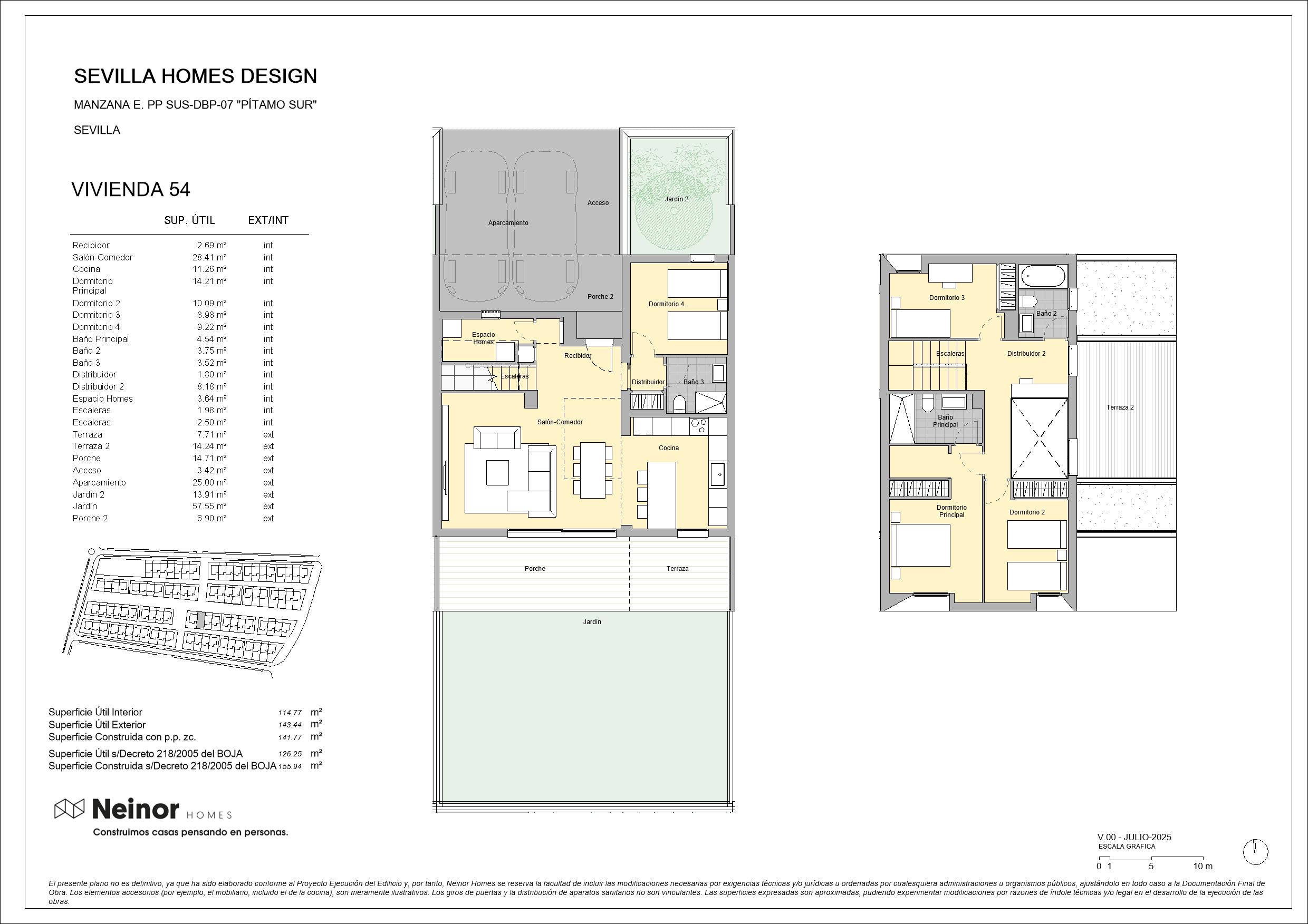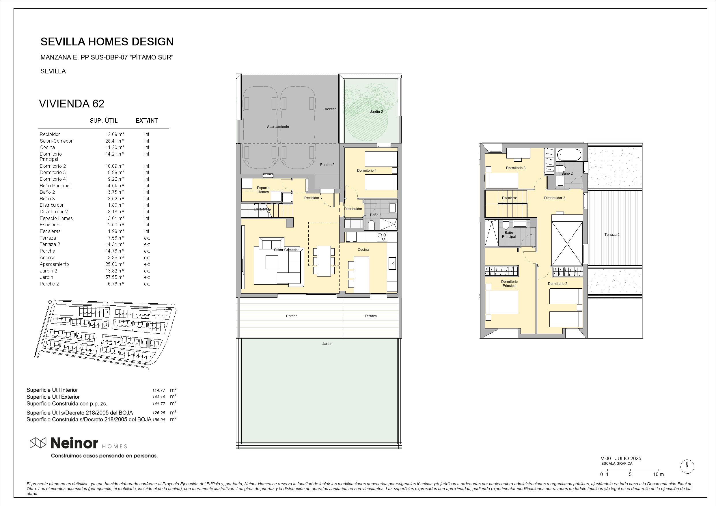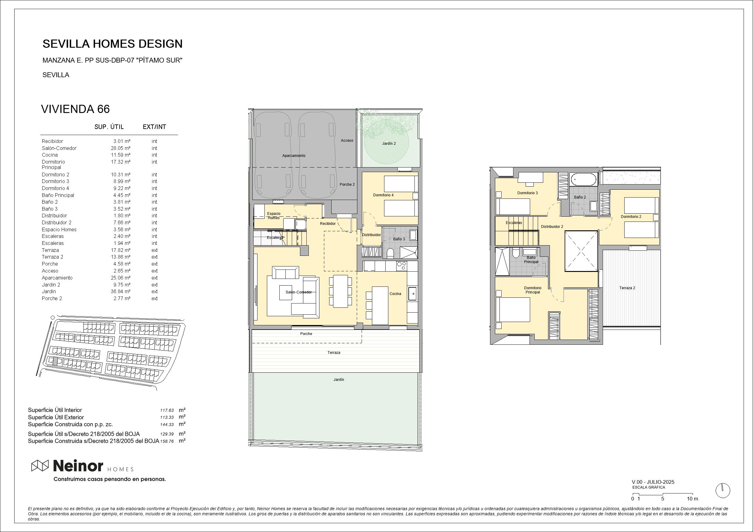 Sevilla Homes Design es un conjunto residencial de 83 viviendas unifamiliares adosadas y pareadas en esquinas, de 4 y 5 dormitorios. Las viviendas destacan por su diseño moderno y actual con una cómoda distribución en dos plantas de altura con espaciosas estancias, además de contar con jardín privado y terraza en la planta superior. Las zonas comunes disponen de circuito de running y paseo, así como de una zona arbolada y un área infantil que, junto con los amplios jardines privados, permiten disfrutar de un entorno natural donde disfrutar de la máxima tranquilidad de inigualables momentos de relax.