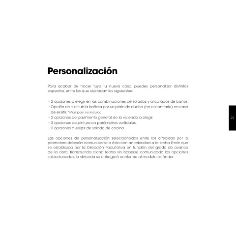 22 • 2 opciones de pavimento general de la vivienda a elegir. 23